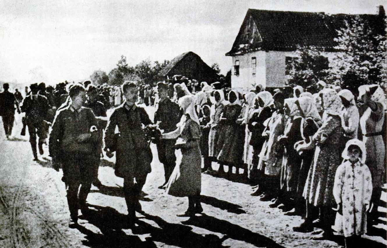 НЕМЕЦКАЯ ФОТОГРАФИЯ ПОКАЗЫВАЕТ, КАК УКРАИНЦЫ ПРИВЕТСТВОВАЛИ ВТОРГШИЕСЯ ВОЙСКА. ОШИБКИ НЕМЦЕВ, КАК ПОКАЗЫВАЕТ ЭТА СТАТЬЯ, ВСКОРЕ РАЗРУШИЛИ ЭТО ХОРОШЕЕ НАСТРОЕНИЕ.