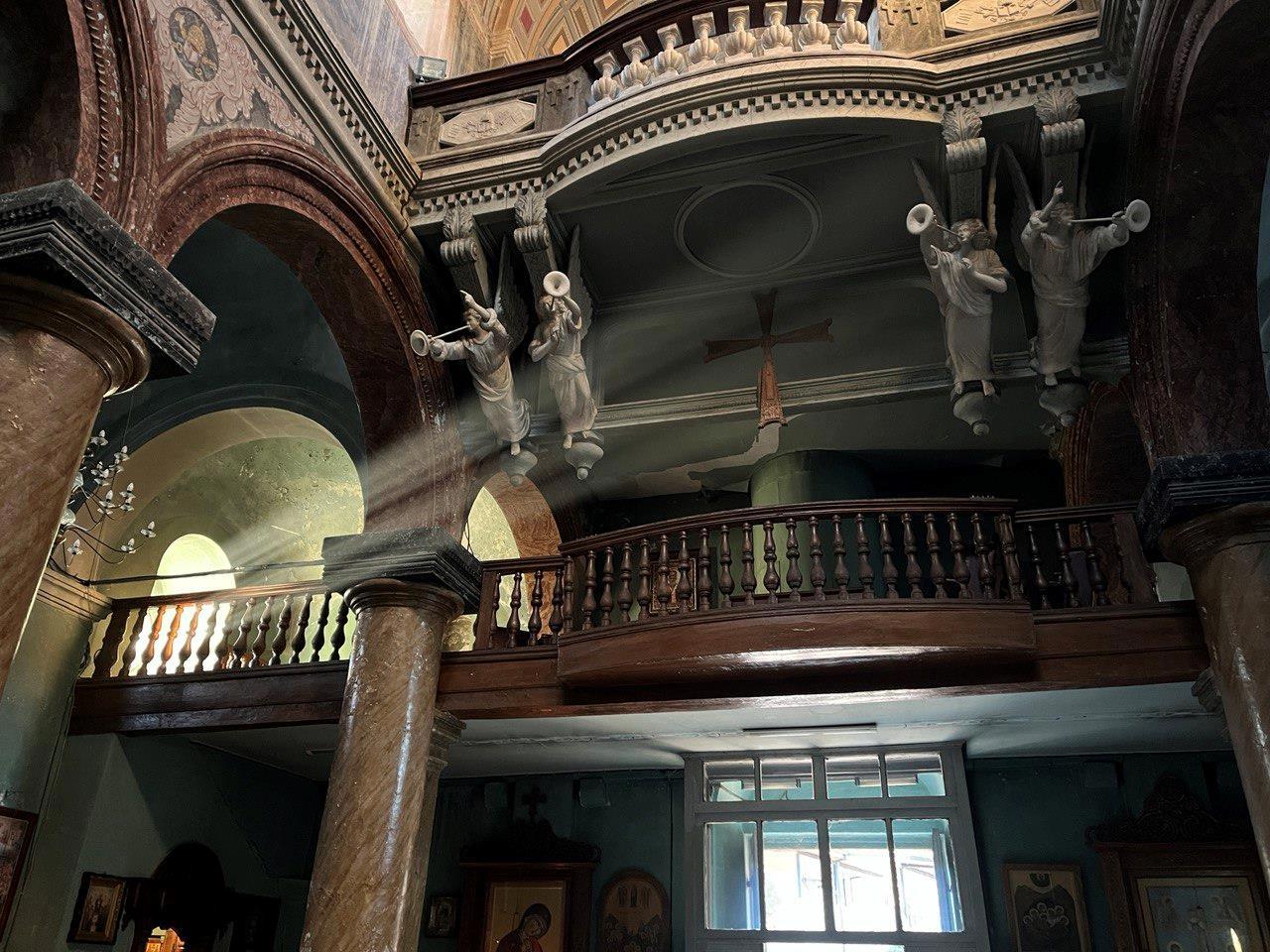 Но дух католицизма из него так и не выветрился: еще можно видеть статуи ангелов и Девы Марии, роспись потолка в ватиканском стиле, а церковная лавка, подозрительно напоминающая исповедальню, сохранила деревянное оформление с перекрещенными ватиканскими ключами.