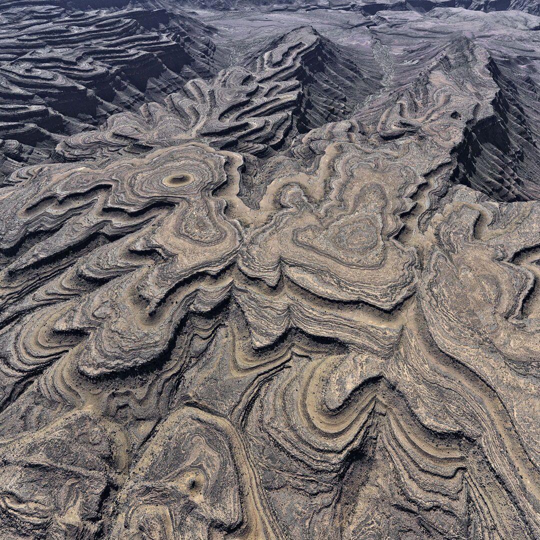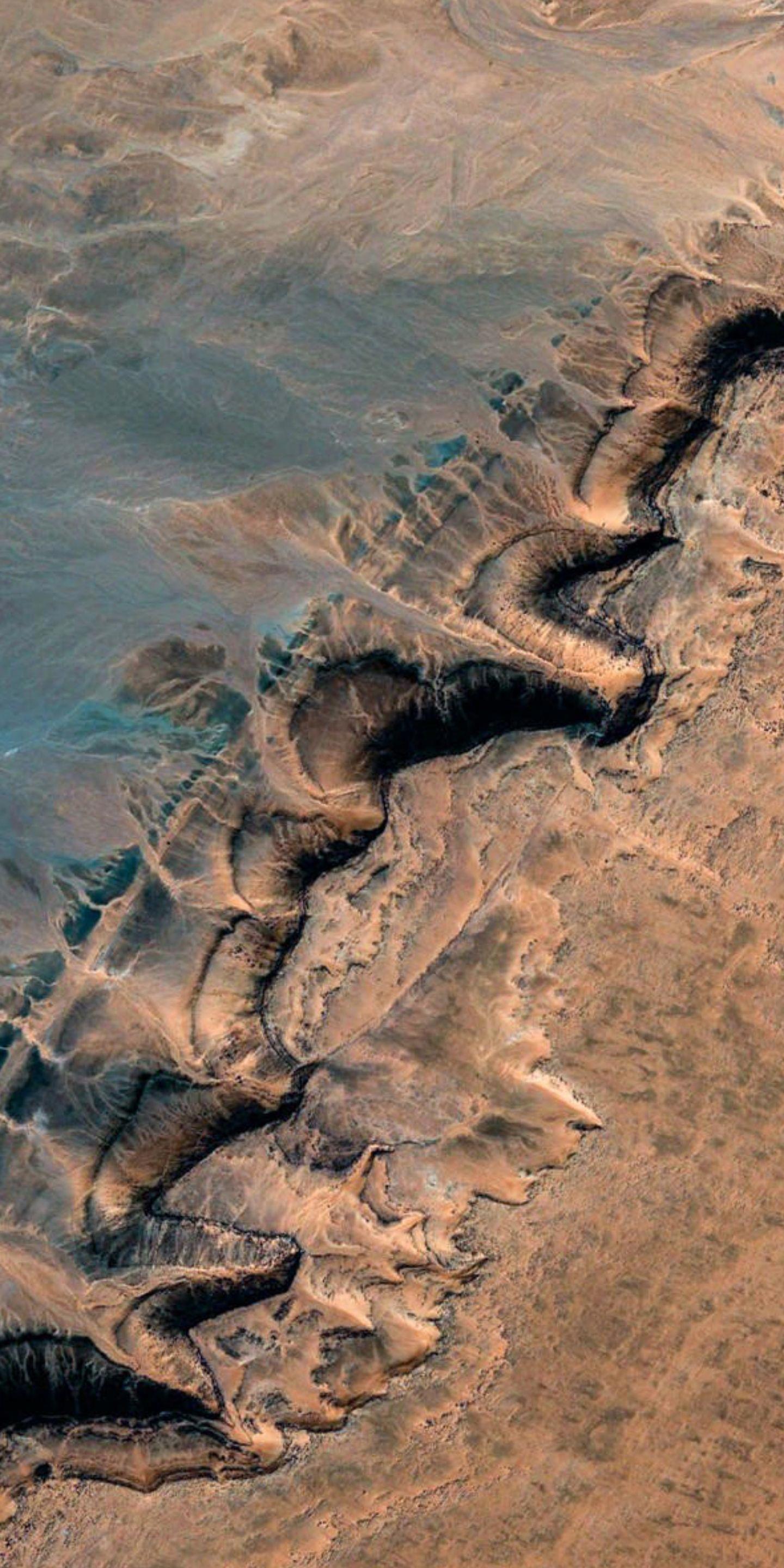 Горы Гуннов, Намибия. Глубокие каньоны прорезают этот старый пустынный горный хребет. Его слои горных пород были отложены в древнем океане 500 миллионов лет назад. Аэрофотоснимок Бернхарда Эдмайера