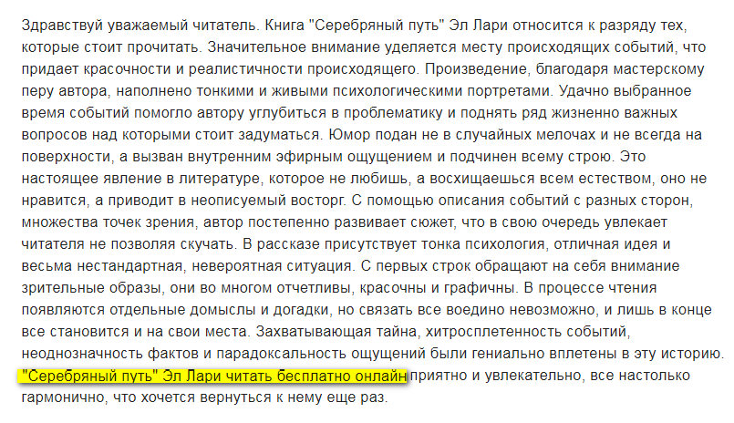 Автор: Лари ЭлКонечно, так себе рецензия... Одни общие слова и никакой конкретики. Написано чисто с целью вставить поисковый запрос (то, что желтым выделено, это он).