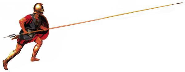 1. Длинное македонское копье-сариса гораздо эффективнее в бою греческого копья-дори. Но ведь не дори единой был силен греческий воин - у него был еще меч ! Мы же все хорошо знаем, что через два века эллинистическая фаланга столкнулась с римскими легионами, и короткий римский меч победил длинную сарису.