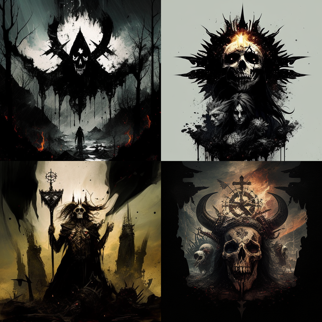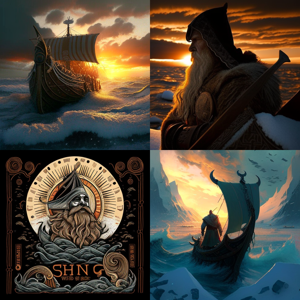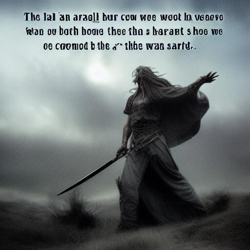 А дальше я решил поглумиться над гадским искусственным разумом, вбивая вместо описания тексты песен, Ensiferum - Heathen Throne и Amon Amarth - The Pursuit Of Vikings, хотел добавить еще, но сеть их не читала, что-то её там не нравилось. Результат вполне можно использовать для обложки альбома какой-нибудь группы, играющей викинг-металл. Ну или фолк.
