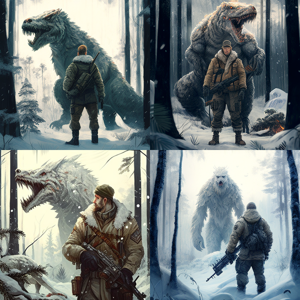 Вместо звероящера нейросеть попыталась впарить мне волосатого тираннозавра и гигантского волосатого гоминида с собачьей мордой.