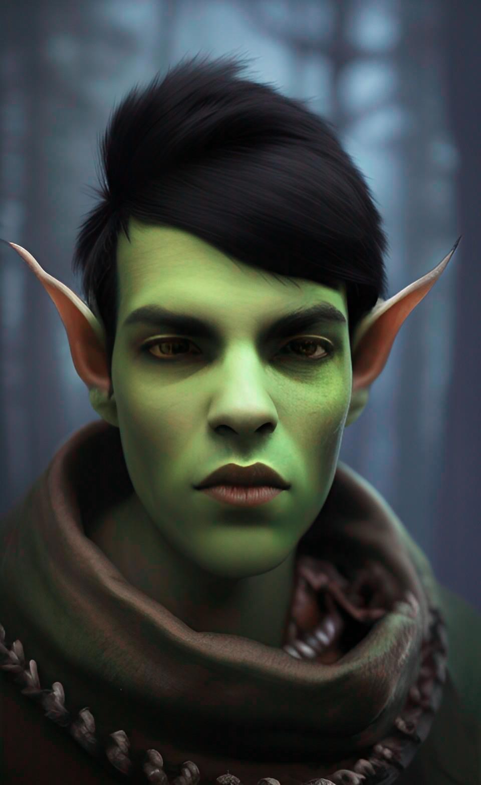 Попробовал сгенерировать портрет персонажа с помощью нейросетей. Выбор пал на Дрогга-охотника - главного героя цикла "Орк-охотник". Согласно лору мира орки - это полукровки, произошедшие от гоблинов и эльфов, поэтому они весьма утонченные и достаточно симпатичные. В то же время само имя Дрогг на орочьем означает "сильный", для орка Дрогг весьма могуч, сильнее заурядного человека.