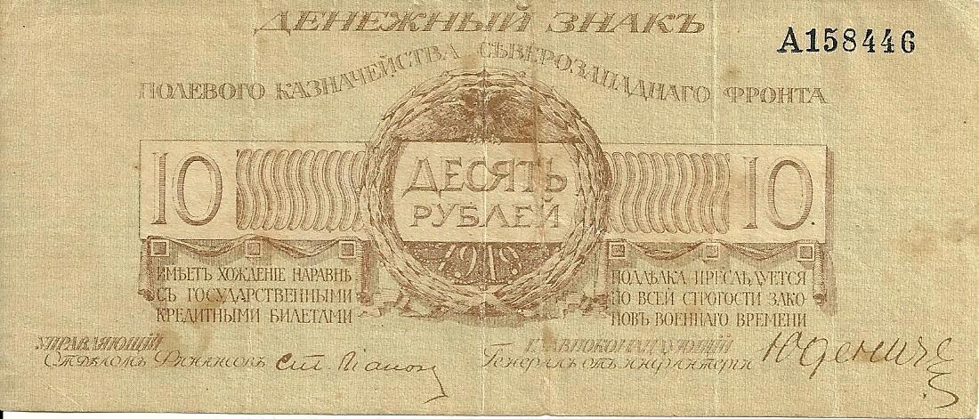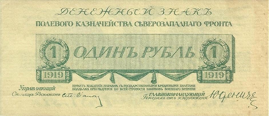 Одним из таких случаев стали денежные знаки Полевого казначейства Северо-Западного фронта, появившиеся в 1919 году.