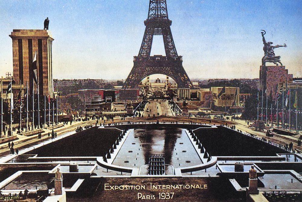 Советский и немецкий павильоны противостоят друг другу на выставке искусств и техники DANS LA VIE MODERNE 1937 года, Париж