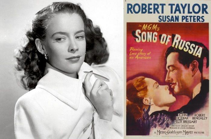 В тот недолгий период, когда СССР и США были не противниками, а союзниками (напомню, это было во время Второй Мировой войны) вышел популярный фильм «Песнь о России». Символом великой и могучей стала героиня Надя Степанова, которую сыграла американская актриса Сьюзан Питерс. Надя – гордая и бесстрашная девушка-пианистка из села Чайковское, которая приехала в столицу на фестиваль, встретила американского дирижера, была приглашена им на совместное турне по СССР и влюбилась в него. Конечно же, взаимно. Далее – внезапно начавшаяся война и испытание чувств американца и россиянки на прочность.
