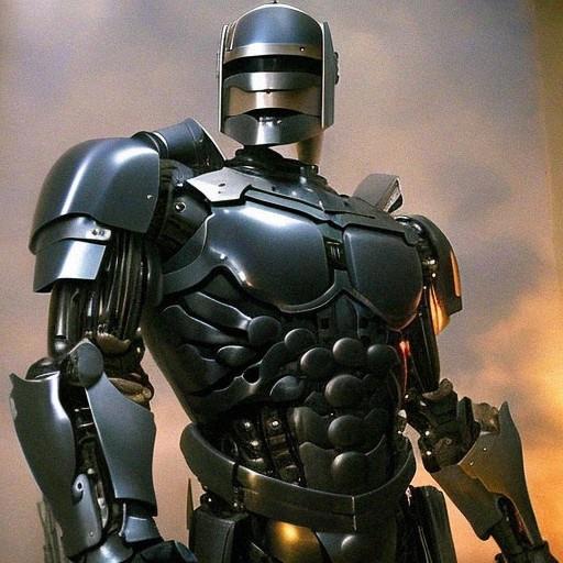 Отмечу, что порой нейросеть глючит и вместо робокопа она рисует вещи вообще не связанные. Штабеля ящиков или пейзажи. Еще очевидно, что, ввиду наличия двух версий робокопа - оригинала 1980-х годов и того, что был показан в фильме ЕМНИП 2014 года.
