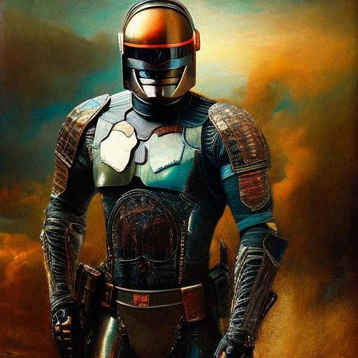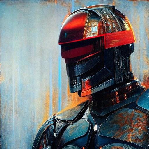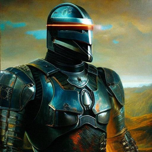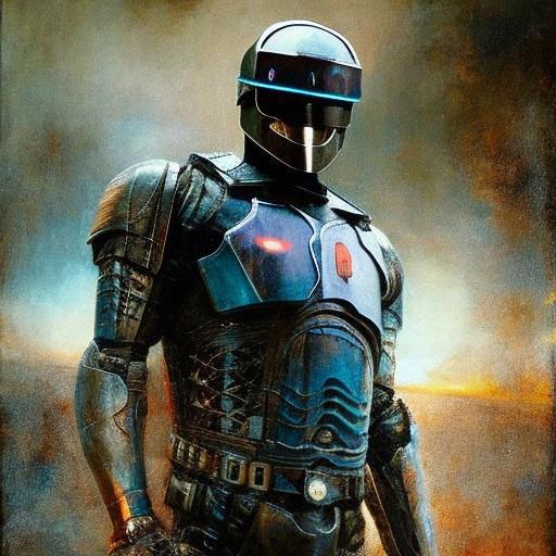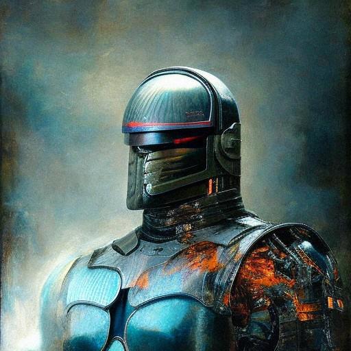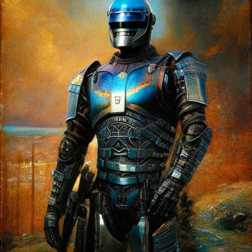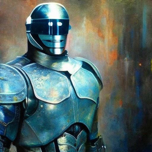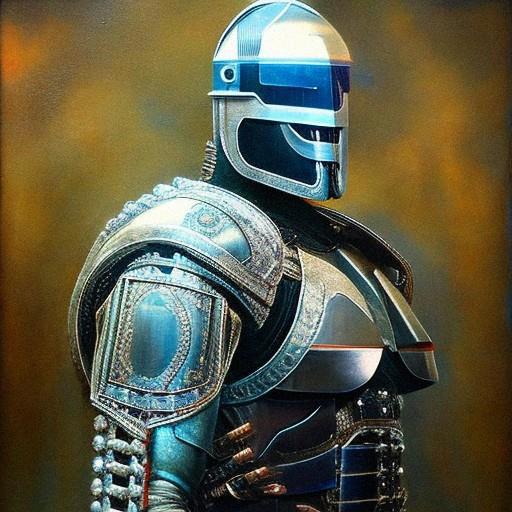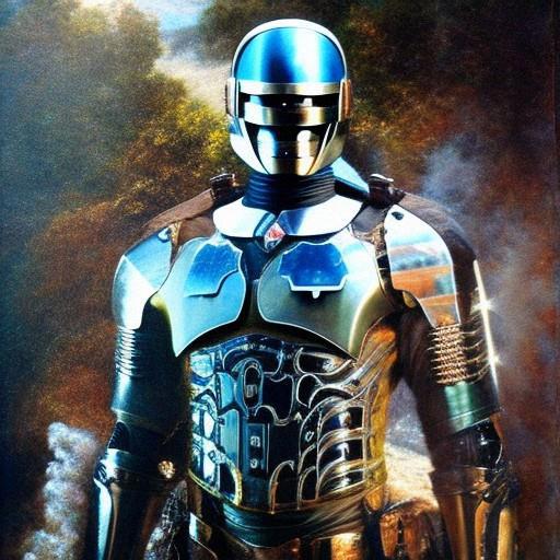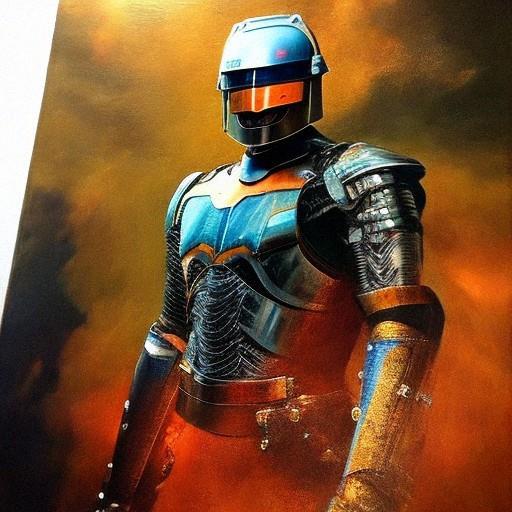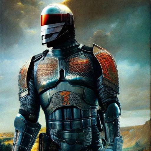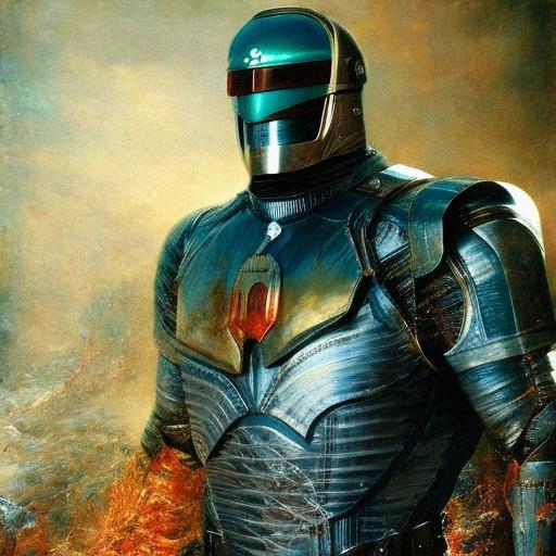 Робокоп как средневековый рыцарь, нарисованный нейросетью