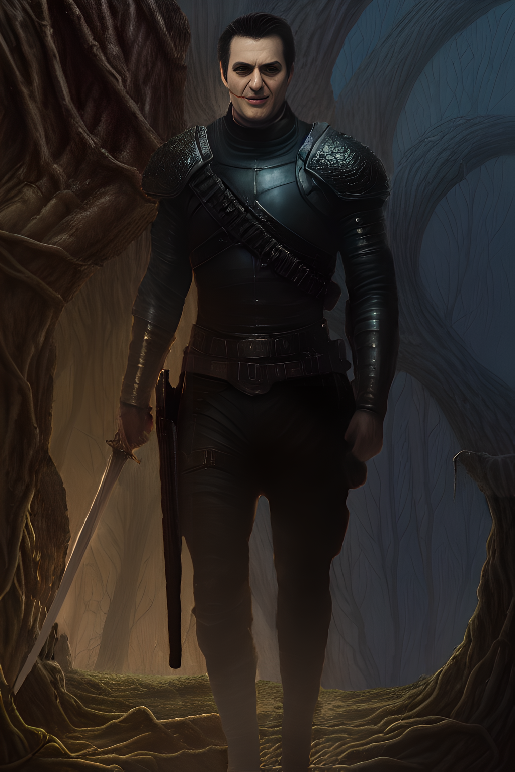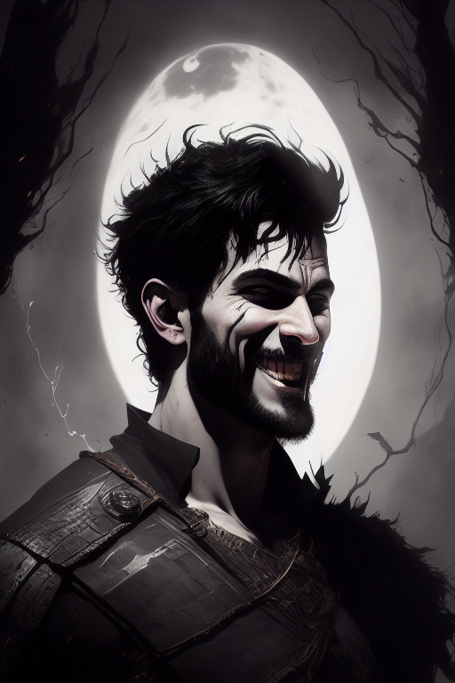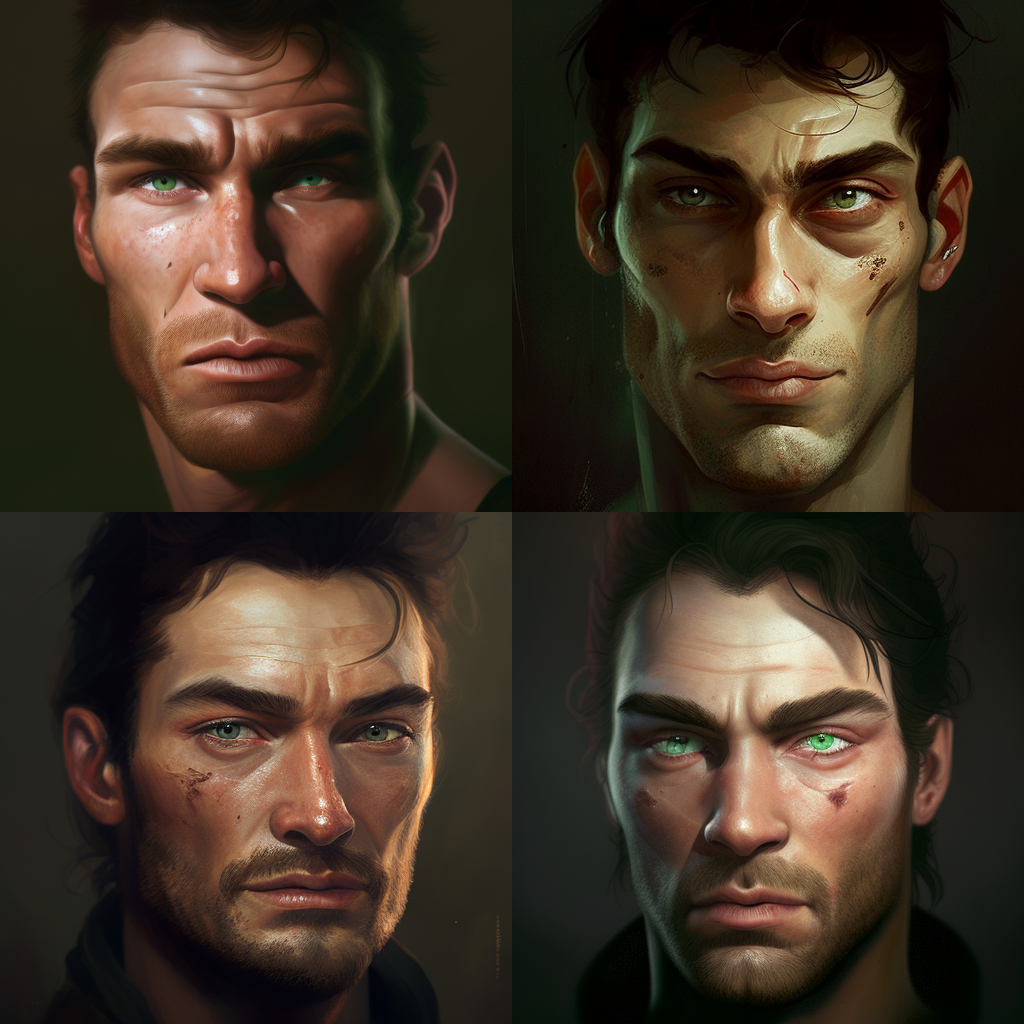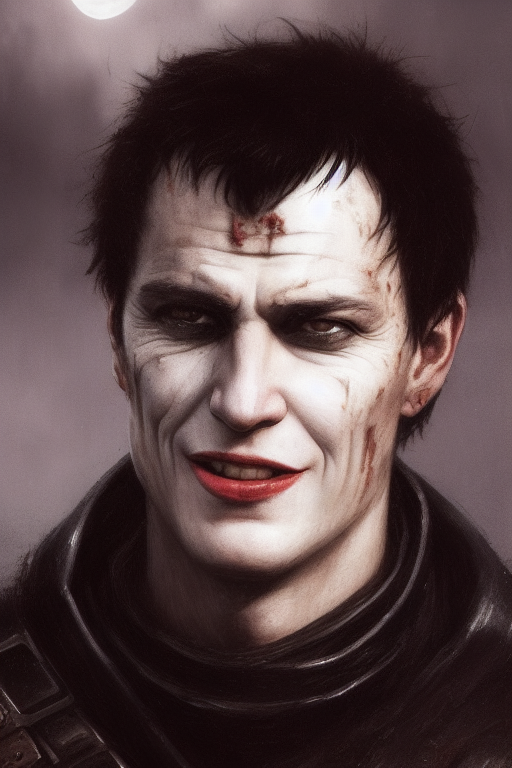 Не, нейросеть конечно наделала брутальненьких мужичков, но я не видел в них своего персонажа. Да и, вдобавок, здесь я вообще никак не смог изобразить его фирменную ухмылочку и какую-то психопатичность.