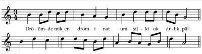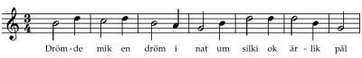 Аутентичные песни викингов до нас, к сожалению, не дошли. Но есть, например, древняя запись о композиции «Drømde mik en drøm i nat». Запись эта датируется 14-ым веком, но сама песня, вероятно, намного старше (это очень в духе средневековых скандинавов — фиксировать через несколько веков то, что бытовало ранее). Давайте рассмотрим эту песню в качестве примера.