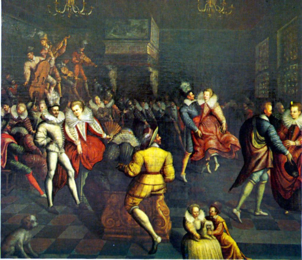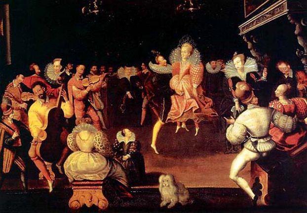 Но вольта была не только одним из любимейших танцев Елизаветы, а еще и очень неприличным танцем, ведь там -- о ужас! -- кавалер поднимал даму, при этом взметались юбки, так что можно было увидеть ножки дамы, а иногда даже ее подвязки. Кошмар!