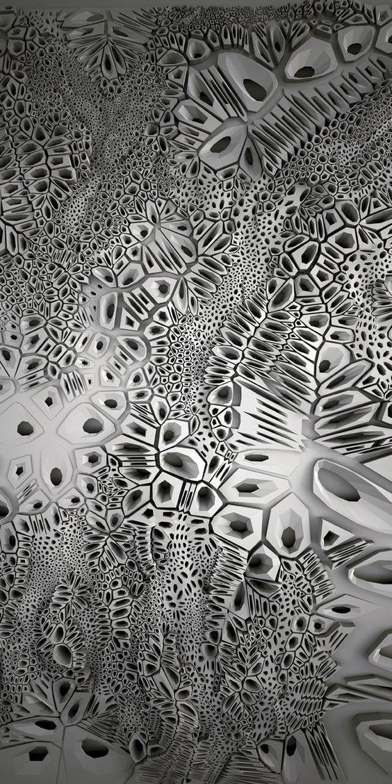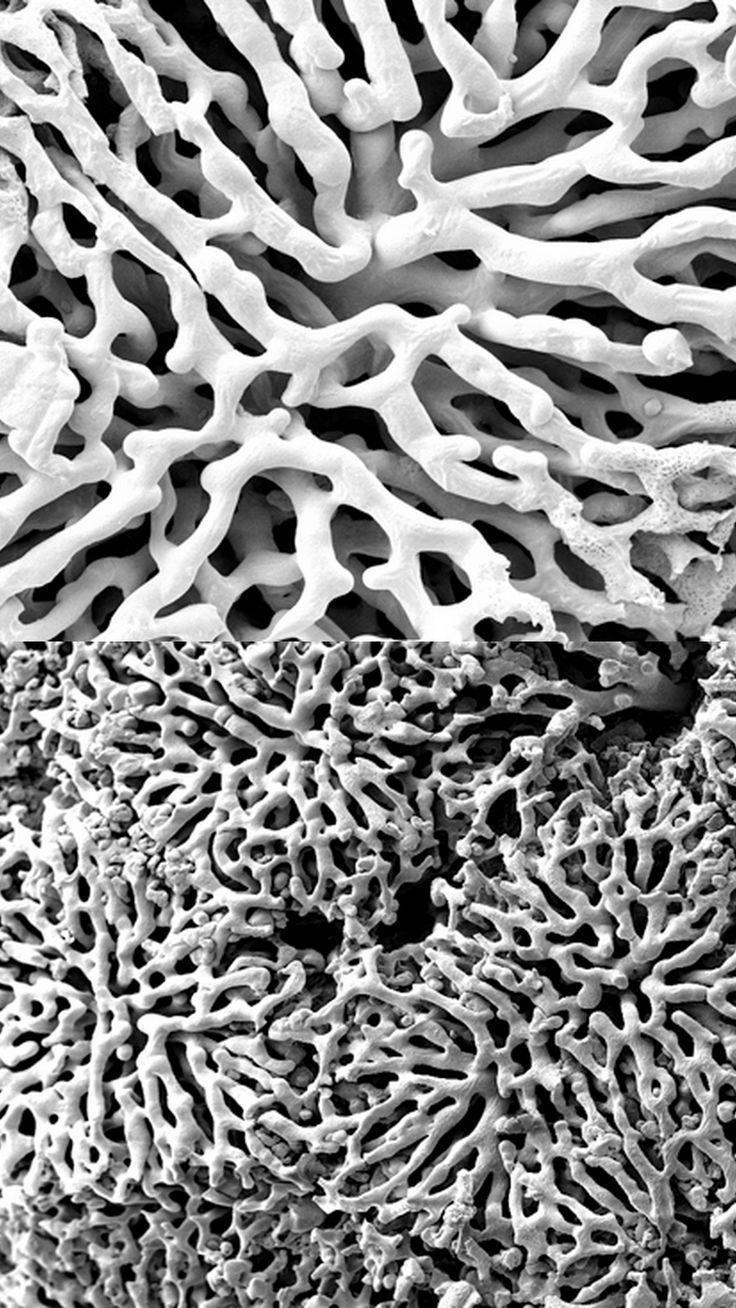 Похожий эффект возникает и при рассмотрении многих биологических структур. Например структур строения различных костной тканей. Или мембран или просто клеточные структуры. Структуры древесины или коры деревьев.