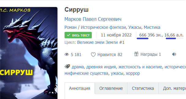 Вчера сделал пару косметических правок в «Сирруше» (ничего серьезного, ляпы, очепятки), но вот какая любопытная статистика получилась по знакам: