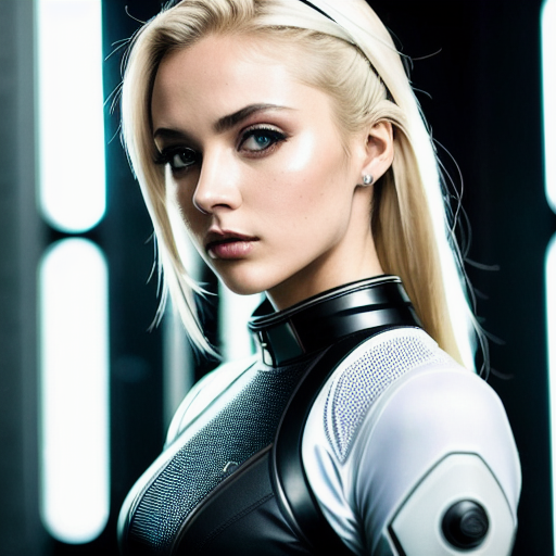 Positive prompt: modelshoot style, (extremely detailed 8k wallpaper), full shot body photo of the most ugly girl, ash blonde, futuristic sci-fi black-white clothes, Intricate, High Detail, Sharp focus, dramatic, photorealistic