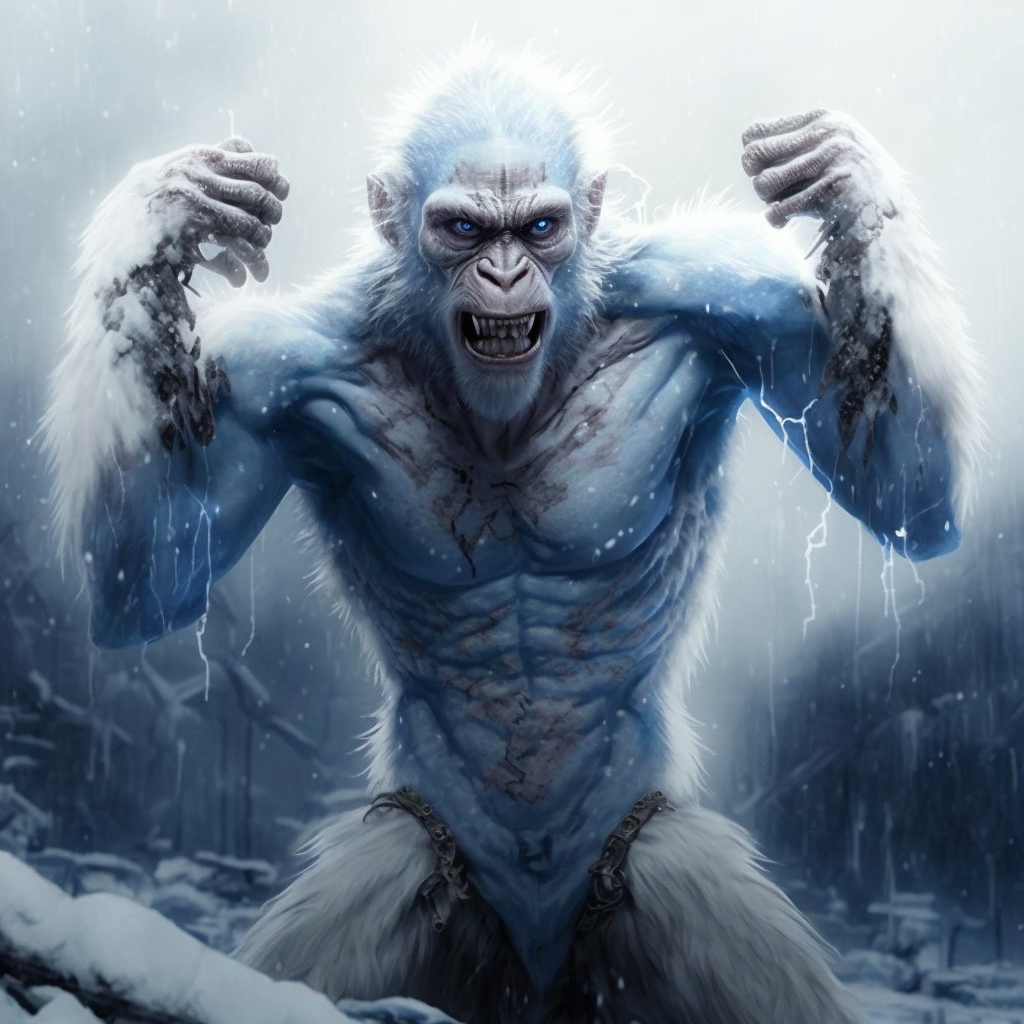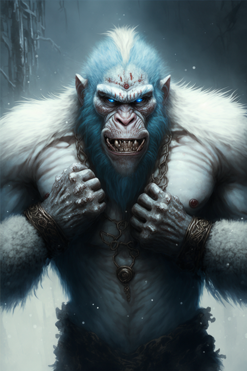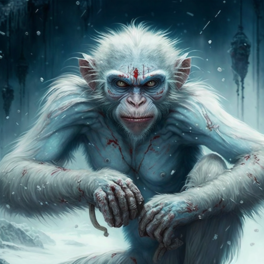 Тут образ йети не совсем классический, но я счел что некая преемственность визульного ряда образов важнее. Опять, же у меня в серии есть процент соответсвия, а крупная белая обезьяна была обречена получить подобное название.