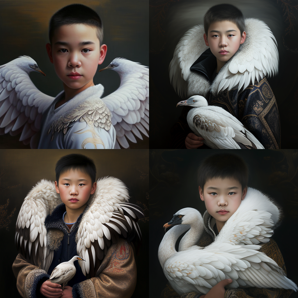 Когда «рисовал» обложку для своего нового рассказа «Четыре лебедя», сеть выдавала вместо изображения лебедя (swan) различных белых птиц, большей части похожих на чайку.
