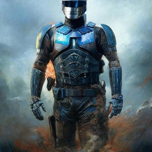Во-первых, с судьей Дреддом. Нейросеть пытается скомпилировать изображения Дредда Сталлоне и Урбана, сильно различных между собой по дизайну, еще и смешать полученный винегрет с Робокопом. Сам по себе Дредд получается разноцветной кляксой, а если добавить Робокопа... короче говоря, сделал под 100 круток, но не добился среднего результата.