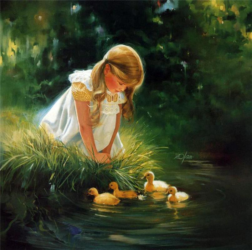 Американского художника Дональда Золана (Donald Zolan) можно назвать одним из самых позитивных и добрых живописцев. Картины Дональда, изображающие детей и животных наполнены любовью, светом и искренними эмоциями.