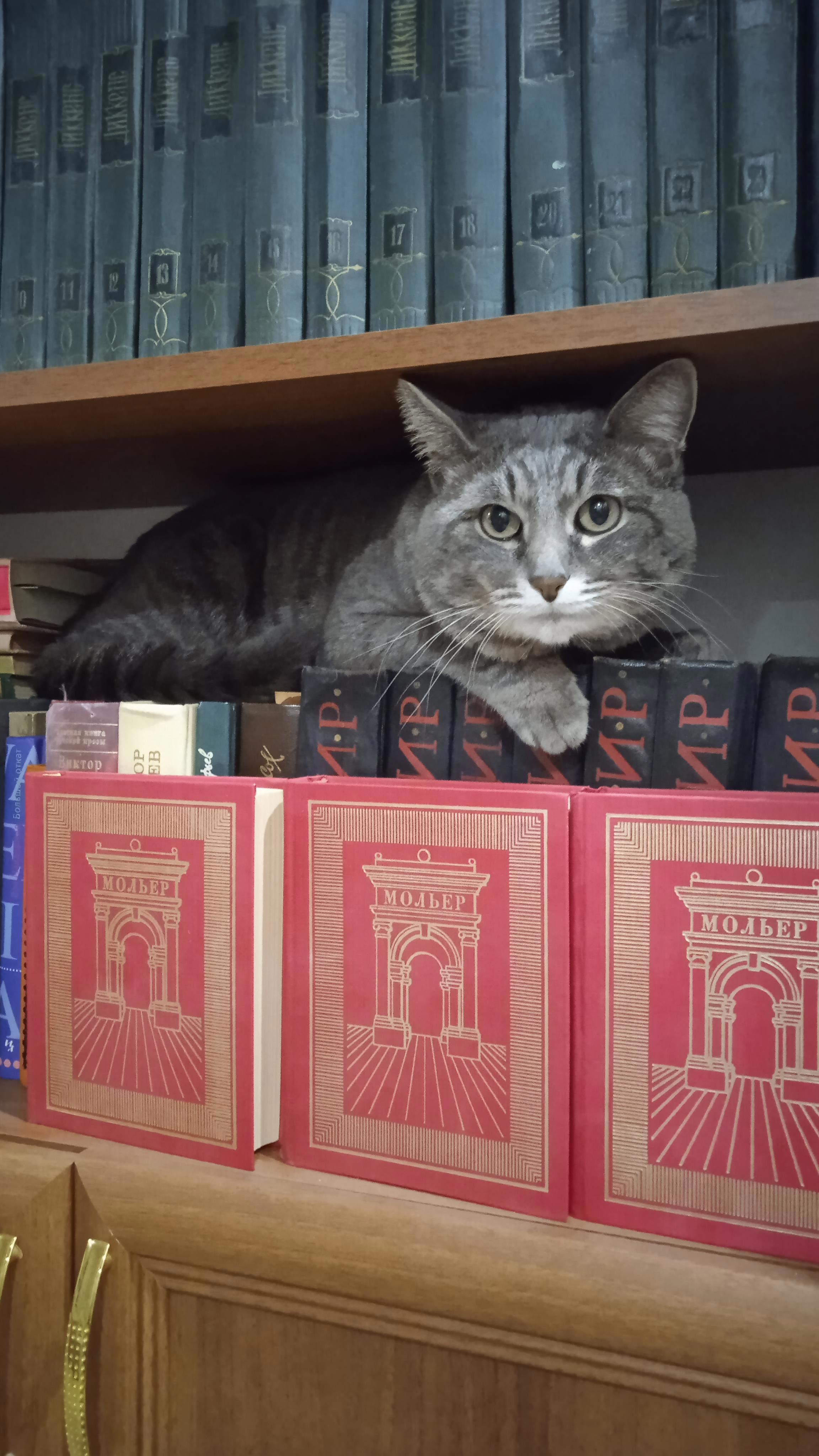 Филимон очень любит момент, когда открывается шкаф. Нужно быстрее в него проникнуть, опередить хозяйку! Ведь как можно такого хорошего котика насильно вытащить из шкафа? Ждала, пока он сам уйдет, благо, не очень ему было удобно, тесно, слишком много книг. За ожиданием и сфоткала его. И, кстати, ни одно печатное издание не пострадало!)