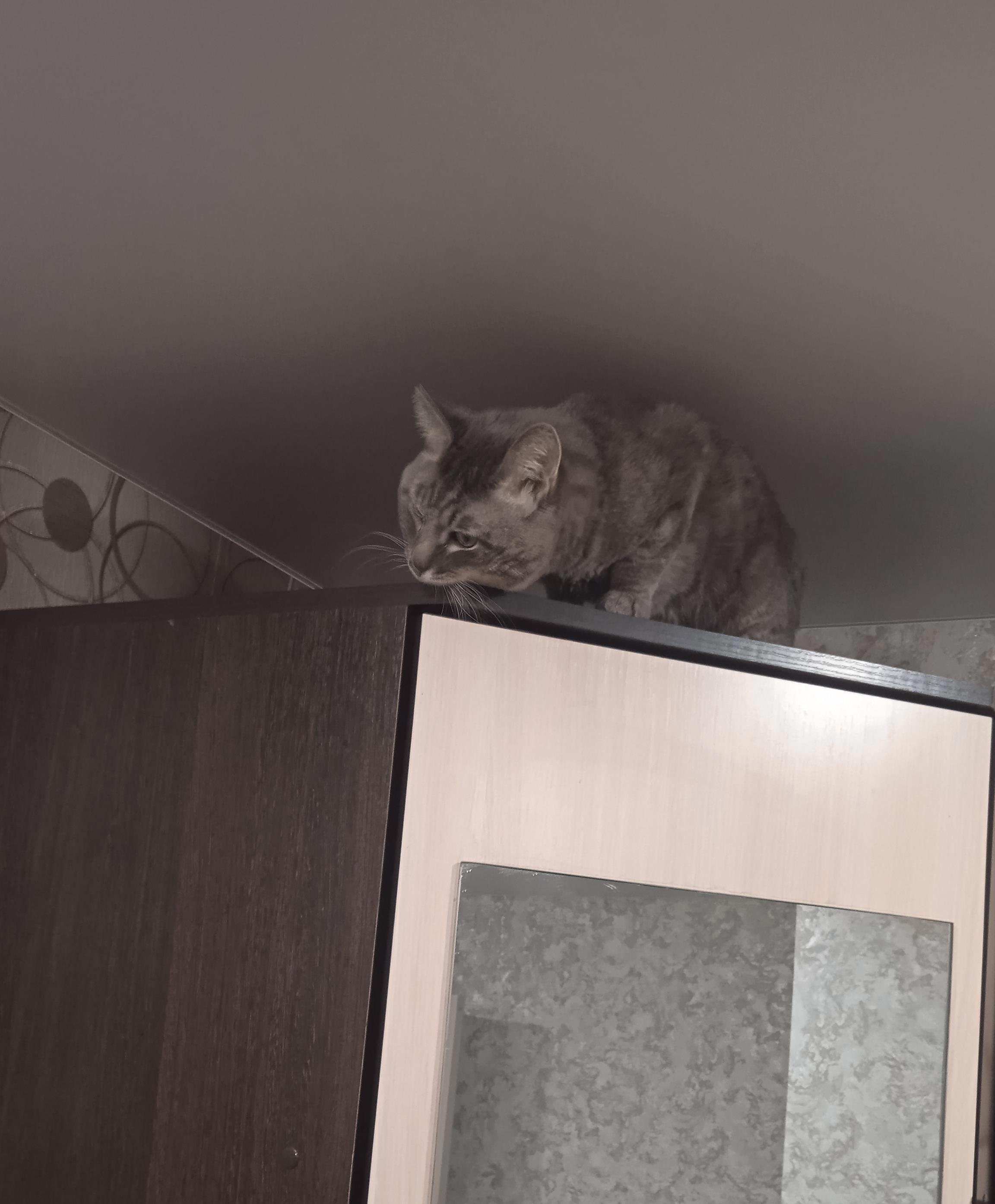 Снова Филимон и шкаф! Любит он их, что поделать. Запрыгнуть на него не мог, внутри то бывал не раз. Был у меня на руках, всем своим кошачьим телом просился туда, наверх! Не отказала, подсадила котофея. Первым делом кинулся обтирать все углы шкафа, а то безобразие, не пахнет им! Счастья то было! Иногда сделать кого-то счастливым совсем не сложно, чаще бы так.