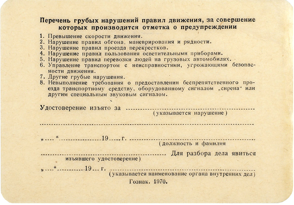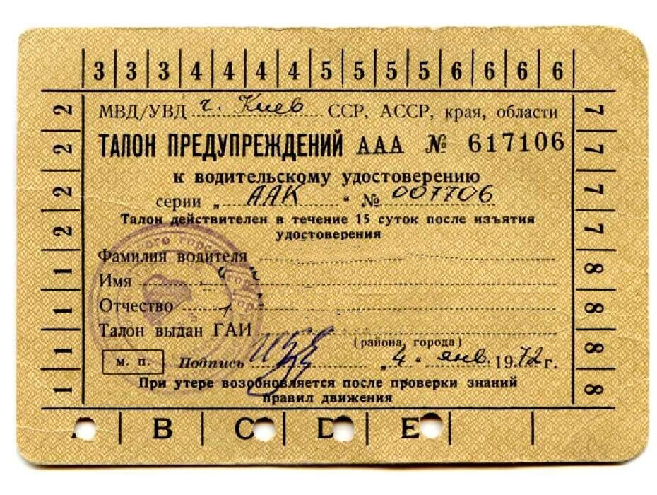 Перед вами, мои маленькие пушистые друзья, страх и ужас советских водителей - Его Величество Талон. Предназначен он для фиксации грубых нарушений ПДД. Что тогда считалось грубым, можно прочесть на обороте.