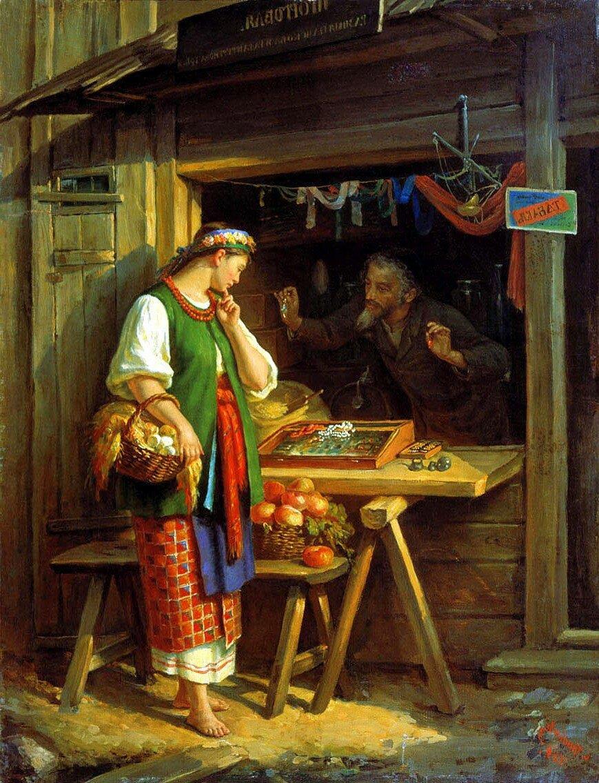 Сергей Иванович Грибков – один из самых ярких и интересных мастеров жанровой живописи. Его картины иногда ироничны, иногда трогательны. Биография его на удивление небогата фактами и укладывается в пару строк: родился в семье мелкого торговца в 1822 году, в 22 года поступил в знаменитое Московское училище живописи, ваяния и зодчества, что по меркам художника достаточно, за время учебы имел награды, после выпуска работал на заказ, имел мастерскую и множество учеников. А еще этот художник был просто очень хорошим человеком.