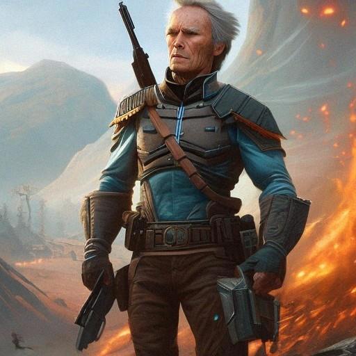Почему Клинт Иствуд оказался в футуристической броне - понятия не имею. С Памелой случился затык - почти все генерации оказались скрыты по причине 18+.