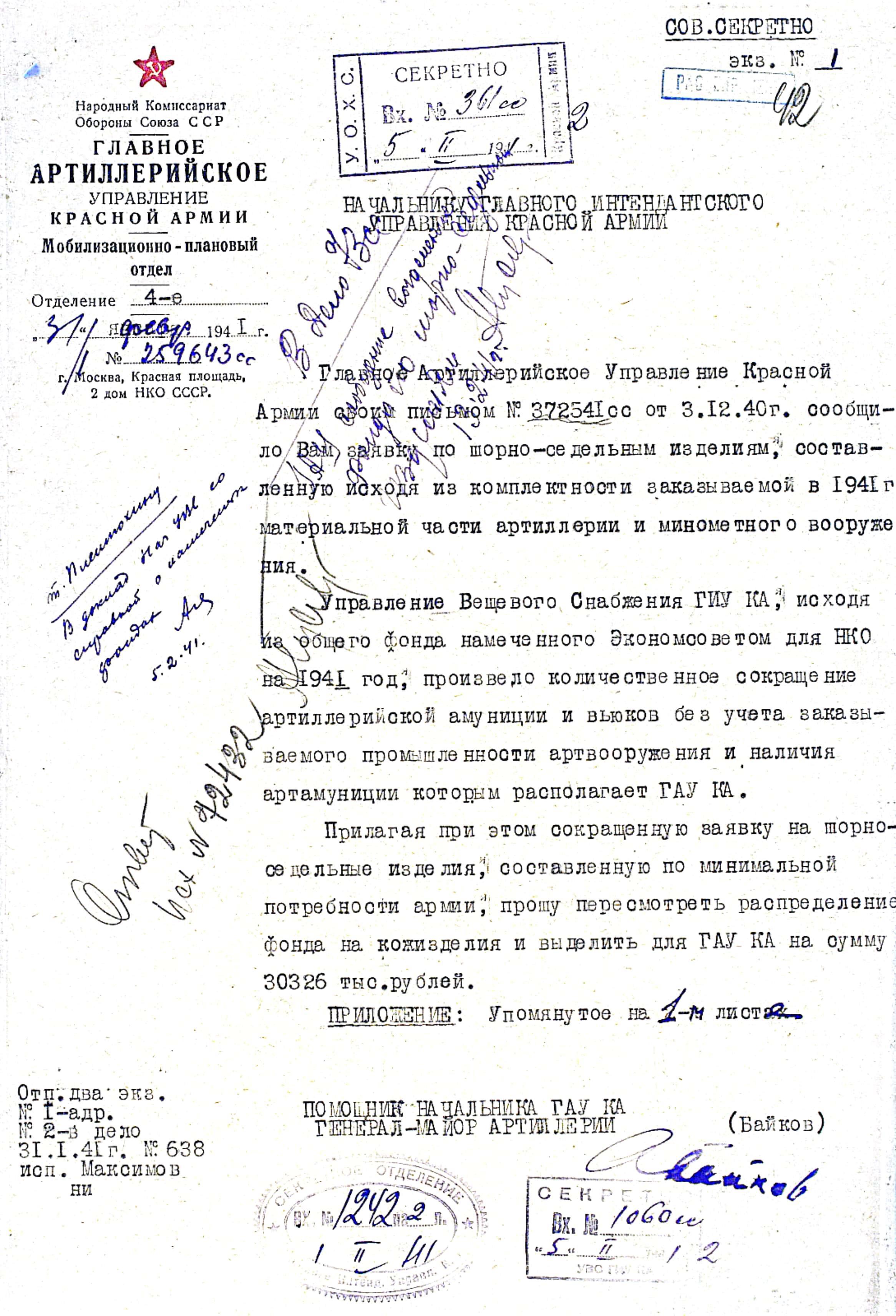 Конечно, корректировка заявок дело обычное и привычное. Какие-то предметы принимаются на снабжение, какие-то - снимаются, меняются цены, предприятия-поставщики, вот планы и приходится корректировать. Но бывают и неожиданные задачи. Взял, к примеру, Экономсовет СССР, и уменьшил фонды Наркомату обороны на 1941 год. Сложно сказать, какую экономию хотели получить экономисты, но заявка ГАУ на вьюки и артиллерийскую амуницию на 1941 год была урезана. Главное Артиллерийское управление "ужалось", перераспределило заказ, Управление вещевого снабжения уменьшило план поставки, а уже в конце июня 1941 года, пришлось принимать экстренные меры и спешно увеличивать поставки арт. вьюков. Вот такая экономия...