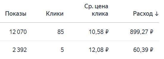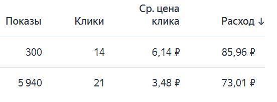 Для сравнения: первая строка – средняя стоимость клика по книге, вторая – самый эффективный вариант.
