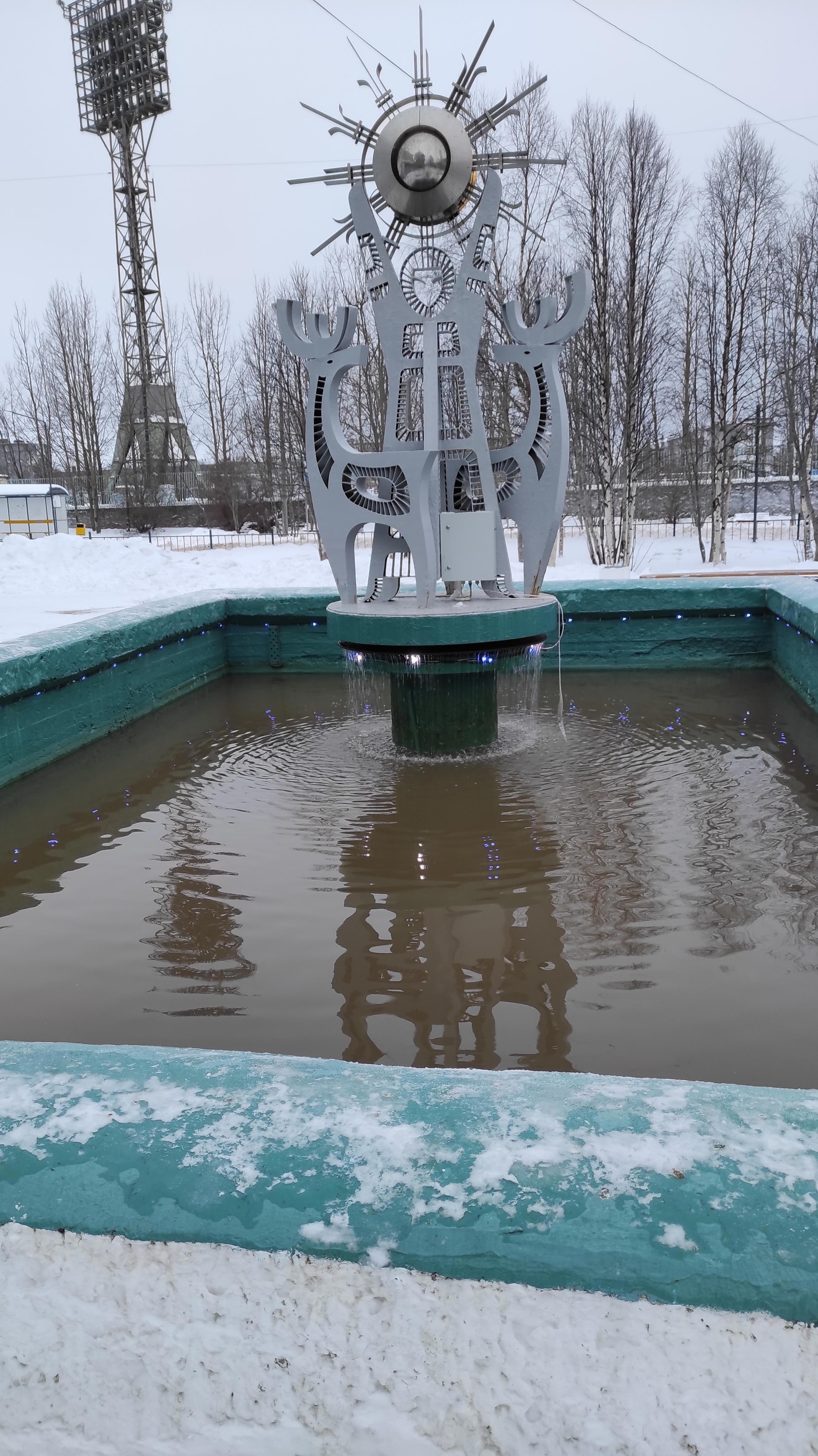 Автор: Хелен ВизардТолько в Заполярье можно увидеть работающий фонтан в январе. А что? Лето такое короткое, что фонтан не успевают запустить, а зимой - самое то