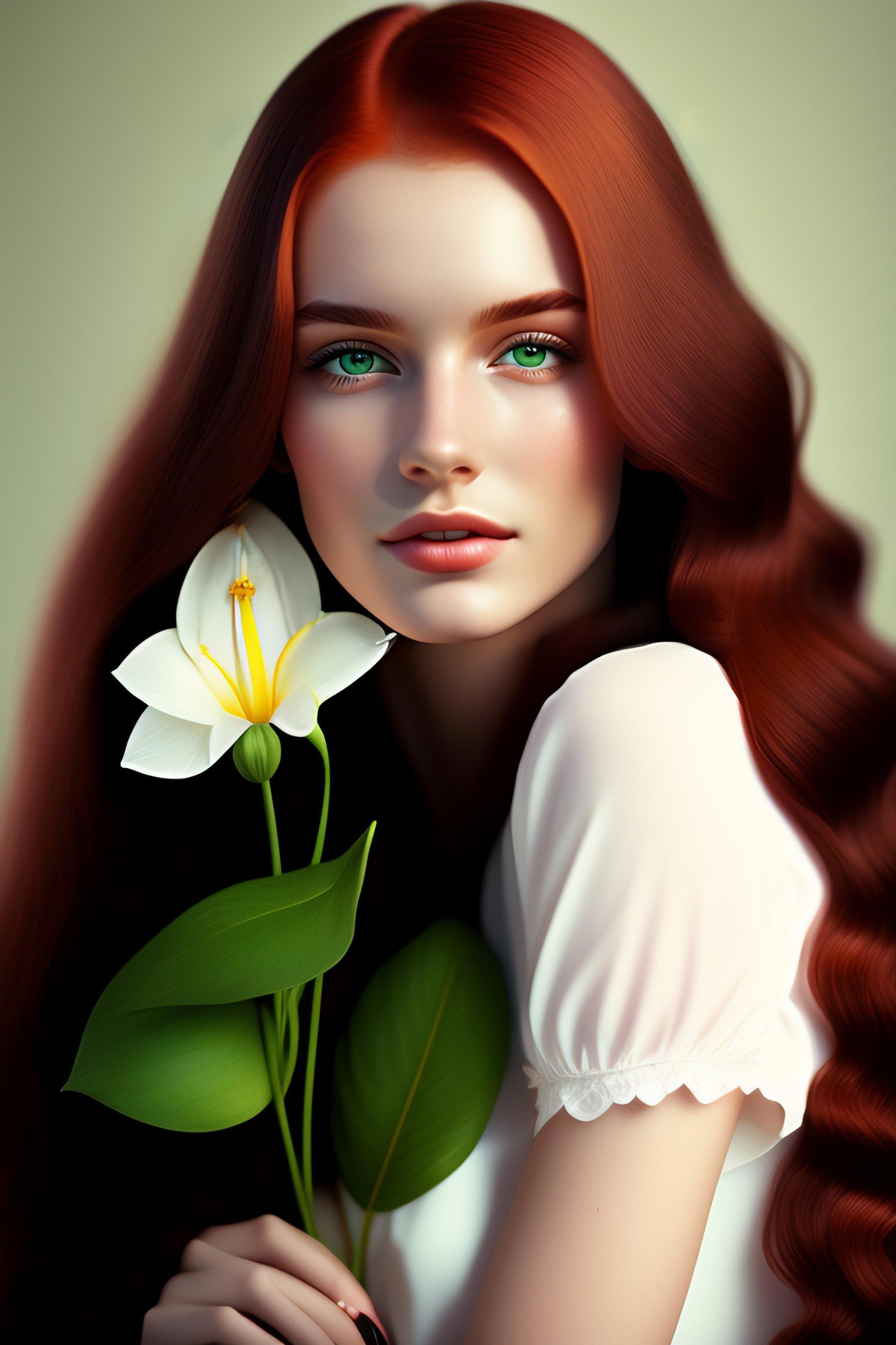 Элинор было просто много - милых, рыжих девушек. Именно здесь мне понравилась попытка нейросети нарисовать лилию. Цветок важный в моем повествовании, так что выбор пал на эту Элли.