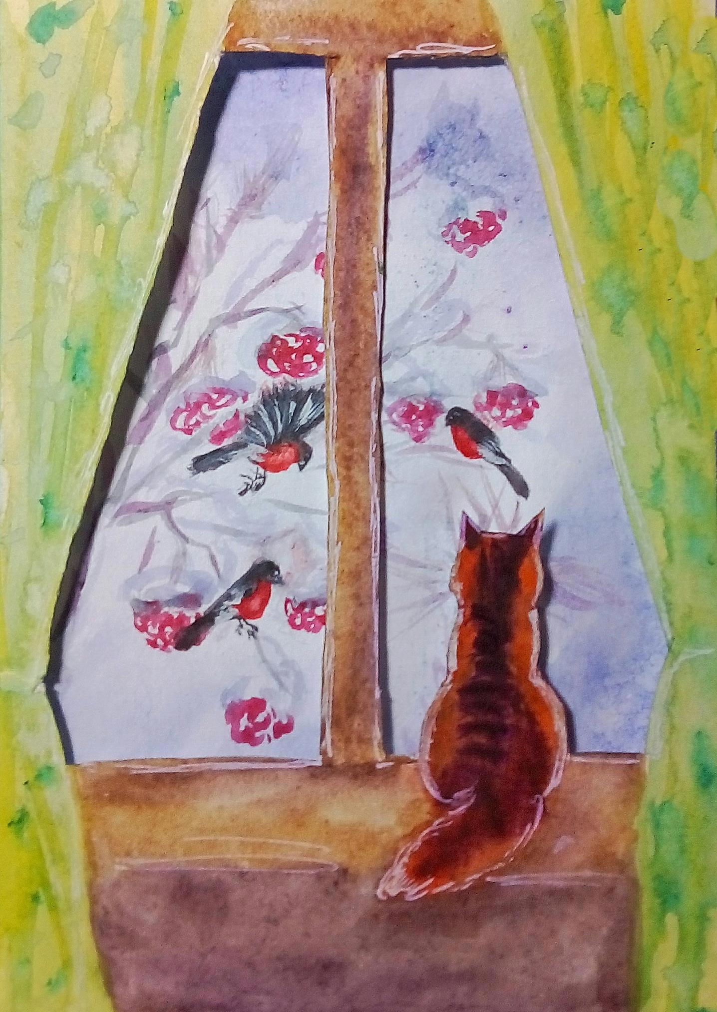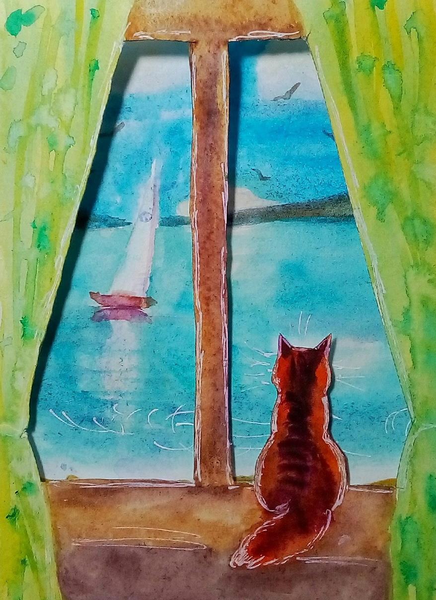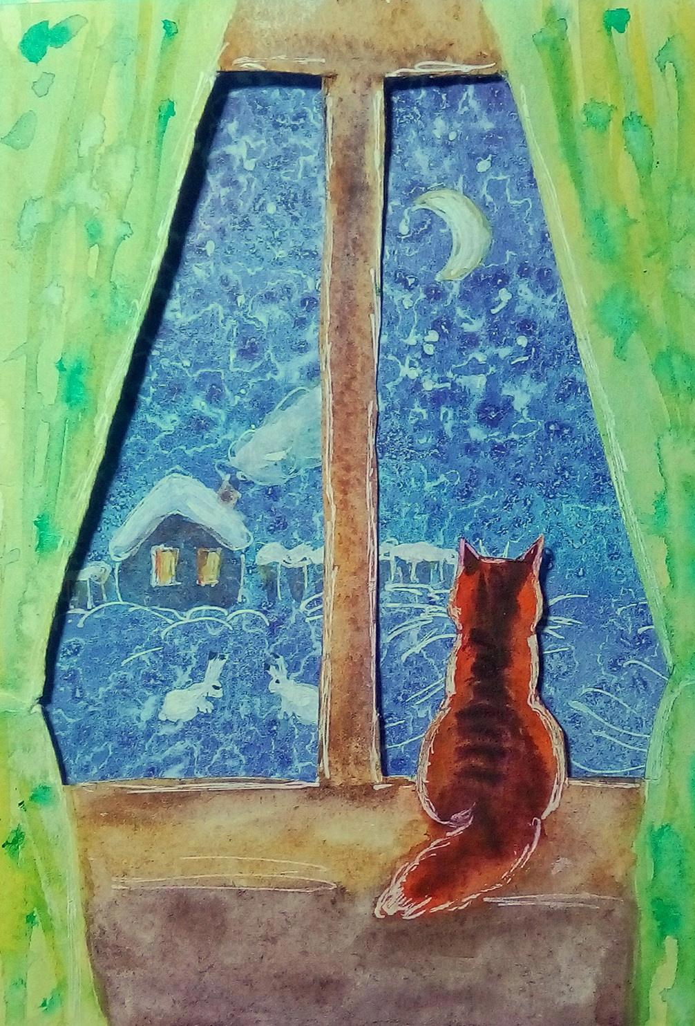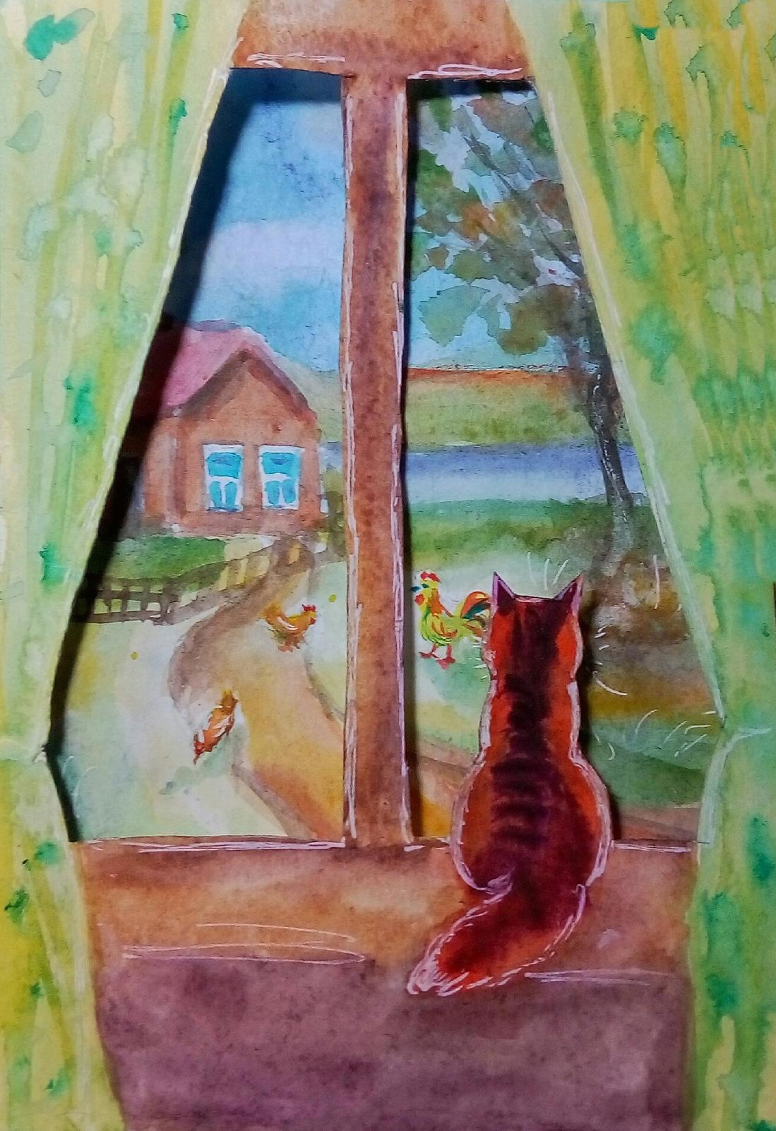 Автор: Ольга ЛевоновичКОШКА НА ОКОШКЕ.