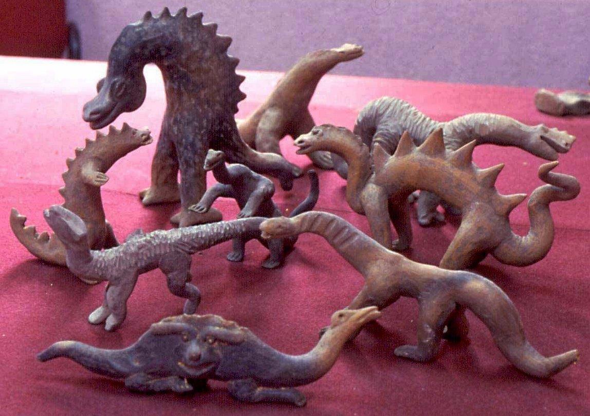 Давайте просто немного подумаем… Чего, собственно, испугались-то? Я тогда в своей заметочке привёл целый ряд изображений со всего мира, на которых «динозавров» более чем достаточно. Все они известны давно, и никто не объявляет подделками ни русского Змея Горыныча, ни европейских и китайских Драконов. В любом тексте историков про «гуннов» можно прочитать про то, что их всадники ходили в атаку, неся вместо знамён изображения «драконов». Плохие или хорошие это были персонажи мифологии разных народов, но они были. Так почему бы не добавить к списку «динозавроверующих» народов ещё один, и спокойно разобраться в этом событии. А уж если и относить эти изделия к числу подделок, то хотя бы нужно было провести нормальные лабораторные исследования фигурок. И не в одной лаборатории, а в нескольких. Это ведь не «Туринская плащаница». Фигурок много – поэтому «изучай-не-хочу». Я, кстати, не исключаю варианта, что какая-то часть из них действительно является подделками. Туристам ведь интересно такой сувенир привезти домой. Так чего бы им не помочь?