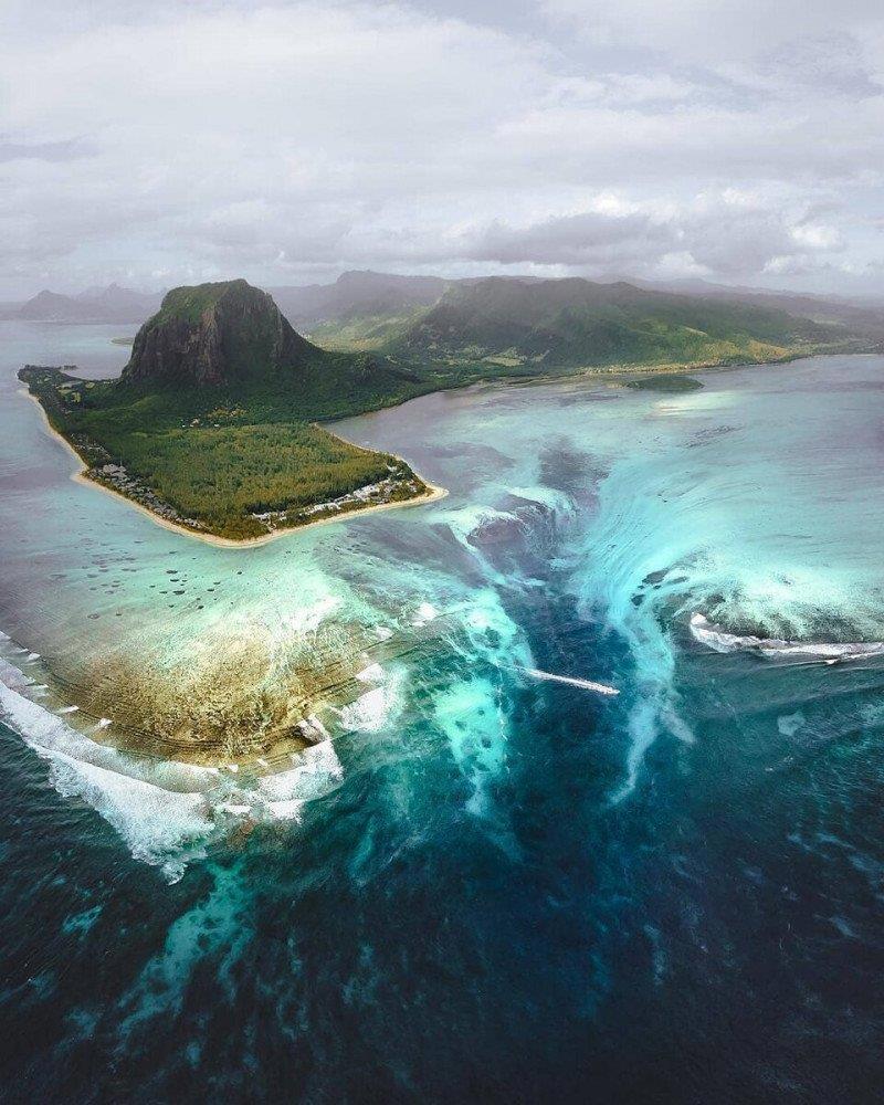 Мы держим пари, что вы, вероятно, никогда раньше не видели ничего подобного. Это невероятное зрелище можно увидеть на Маврикии, островном государстве в Индийском океане. Хотя это выглядит как ужасающий подводный водопад, который засосет вас навстречу гибели в глубины океана, на самом деле это просто оптическая иллюзия, вызванная песком и илом, определенным образом бегущими по дну океана. Это может быть только иллюзией, но представьте, что вы плывете или катаетесь на лодке по "этому ужасу". Нет. Спасибо:)