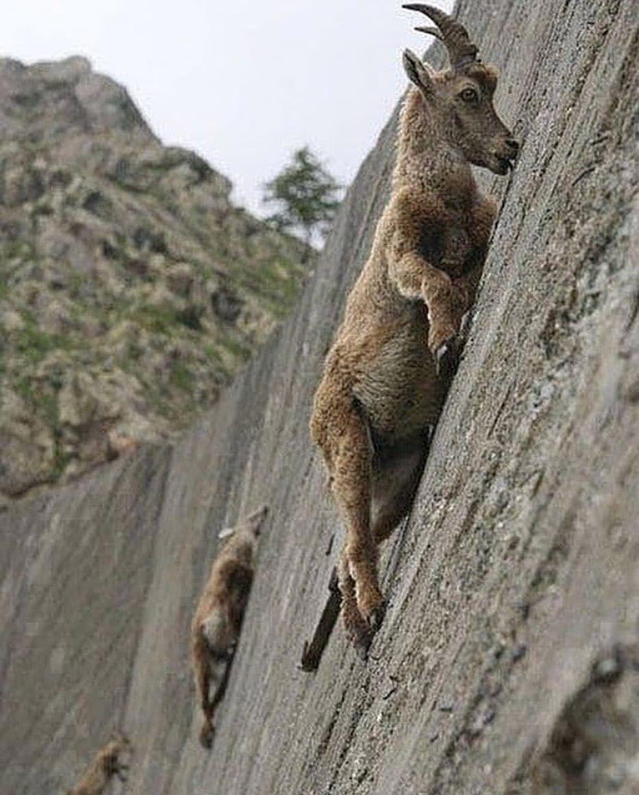 Известно, что козы способны взбираться по труднопроходимой местности, но почему-то этот снимок выглядит совершенно невозможным! Они учатся лазать, когда им всего несколько дней от роду, и способны следовать за своими родителями по крутым горам зимой в поисках пищи или спасаясь от хищников. Не говоря уже о том, что они тоже чертовски забавно.