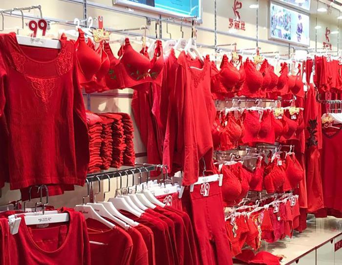 Повсюду - в больших супермаркетах и маленьких уличных магазинчиках появляется красное нижнее бельё. В Китае верят, что красный цвет оберегает от неудачи и несчастья. А для тех, кто родился в год того животного, чей год наступил - красное бельё и вовсе обязательно!