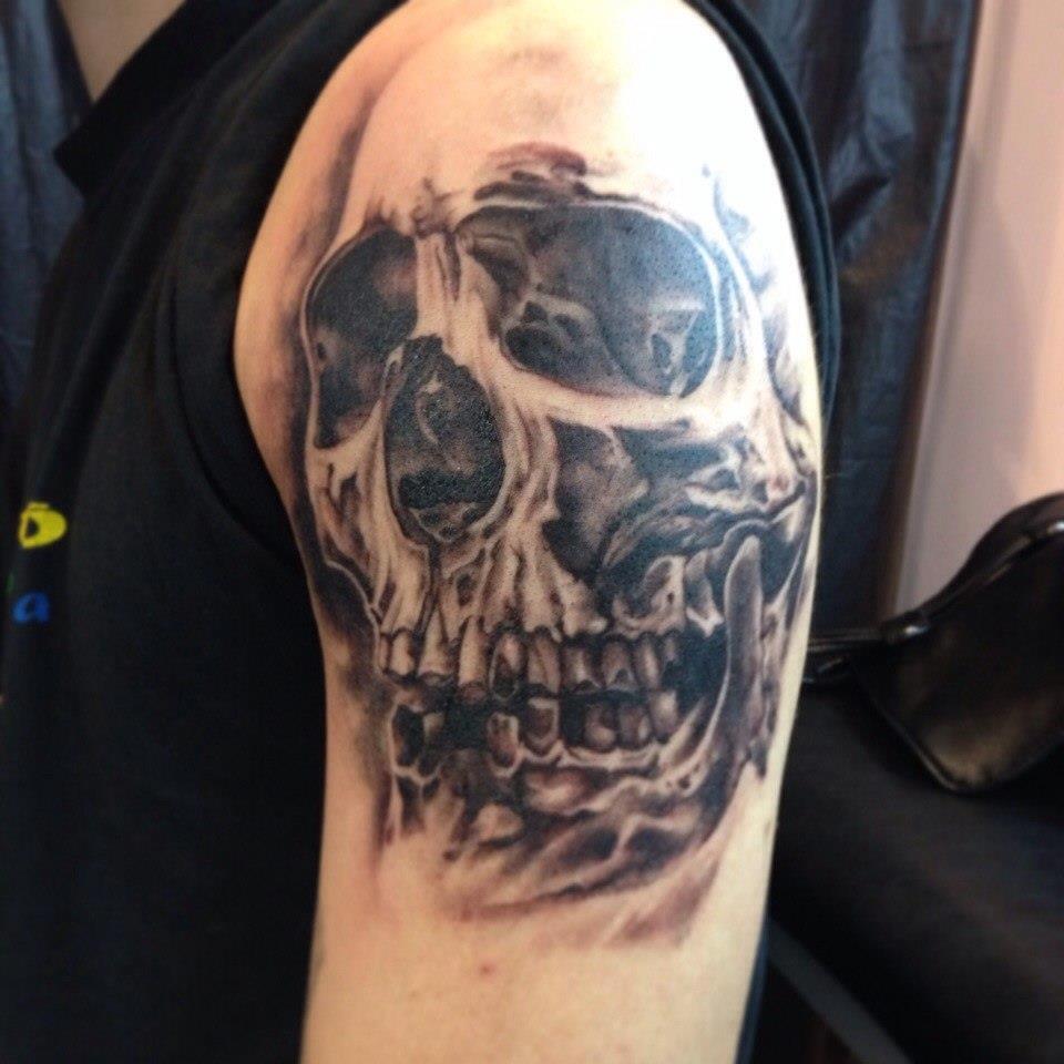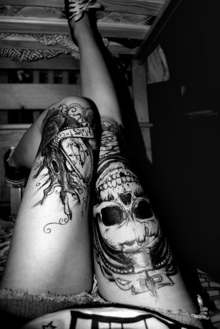 А потом попалась как на грех симпатичная молодая деваха, испортившая себе ляжку таким черепом - вот похожее.