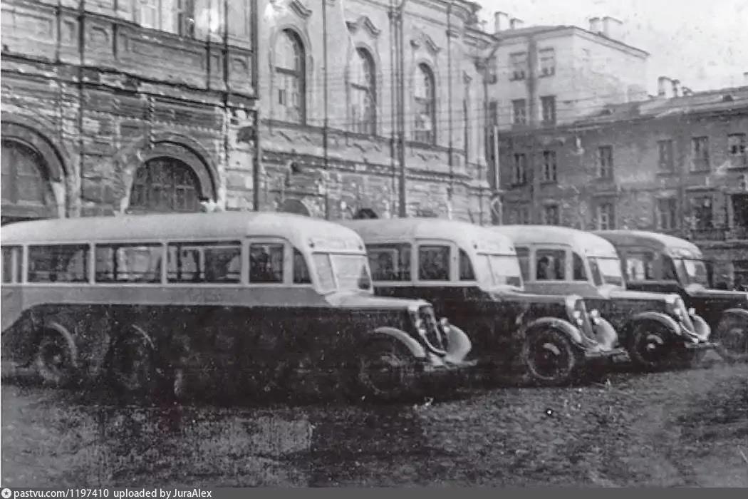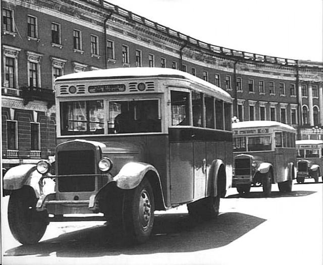 ЗИС-8 Колонна автобусов у автобусного парка на Конюшенной площади, Лениград, 1933.
