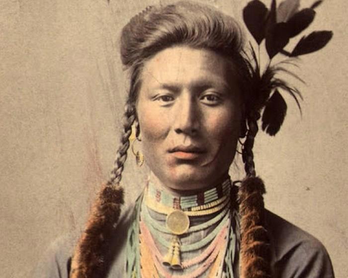 Старый Койот (или Желтый пес), племя кроу. Оригинал фотографии 1879 года, цветная ретушь 1910 года.