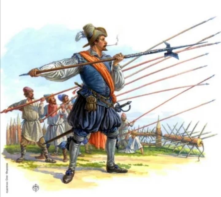 У Скопина же после измены шведских наёмников в середине июля осталось около трех тысяч служивых людей, к которым присоединились сохранившие верность и не придавшие чести добровольцы-шведы и немцы под началом Христиера Зомме. Ещё тысяча человек. Так вот, всего за месяц (!) войско Михаила выросло в 3 раза - и прежде всего, за счёт крестьян, присоединившихся к его рати. Именно из крестьян Михаил Васильевич решил готовить пикинеров, создавая "народное войско" по примеру Морица Оранского - но у европейских инструкторов был ведь всего месяц на подготовку рекрутов!