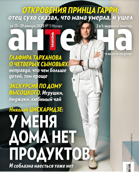 Автор: Д. В. АмурскийСлучайно мне попался на глаза свежий номер журнала "Антенна". На обложке — Николай Цискаридзе, весь в белом, а ниже подпись крупными белыми буквами: "У МЕНЯ ДОМА НЕТ ПРОДУКТОВ. И соблазна наесться тоже нет".