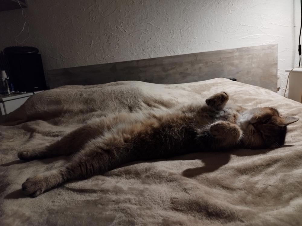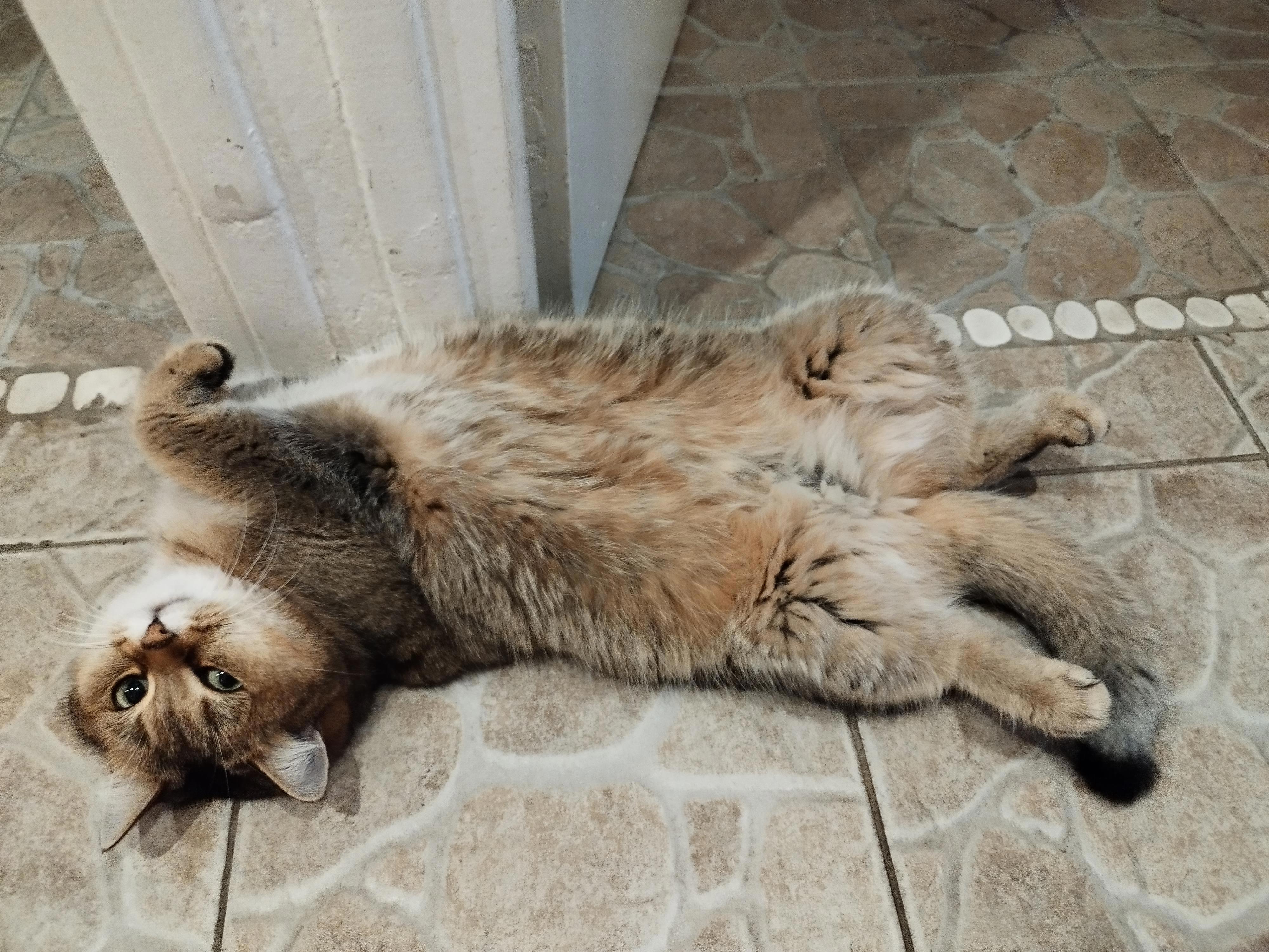 Кошька Бася как бы спрашивает: мать, ты чо-нить вкусненького похряцать привезла? Я тут лишаюсь, как бы. Голодаю...
