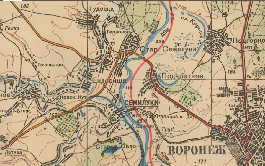 В районе станции Семилуки, находился железнодорожный мост, к северу от малышевской переправы.