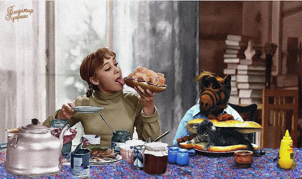 Фантазия на тему: "Что было бы, если бы корабль пришельца по имени Альф потерпел крушение на несколько десятков лет раньше и в другом полушарии)) Не волнуйтесь, во время создания арта, ни один котёнок не пострадал