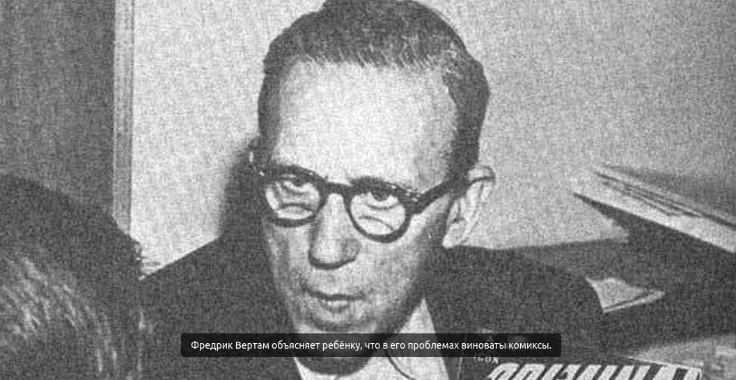 В 60 годы в США, правительство решило взяться за комиксы. Был такой там психиатр, Фредрик Вертам. Дядька, брызгая слюной и капая тестостероном, отчаянно доказывал американскому обществу, что комиксы калечат детскую психику. В принципе, любые комиксы. Он выступал за полный запрет комиксов в стране. Вот этот прекрасный человек: