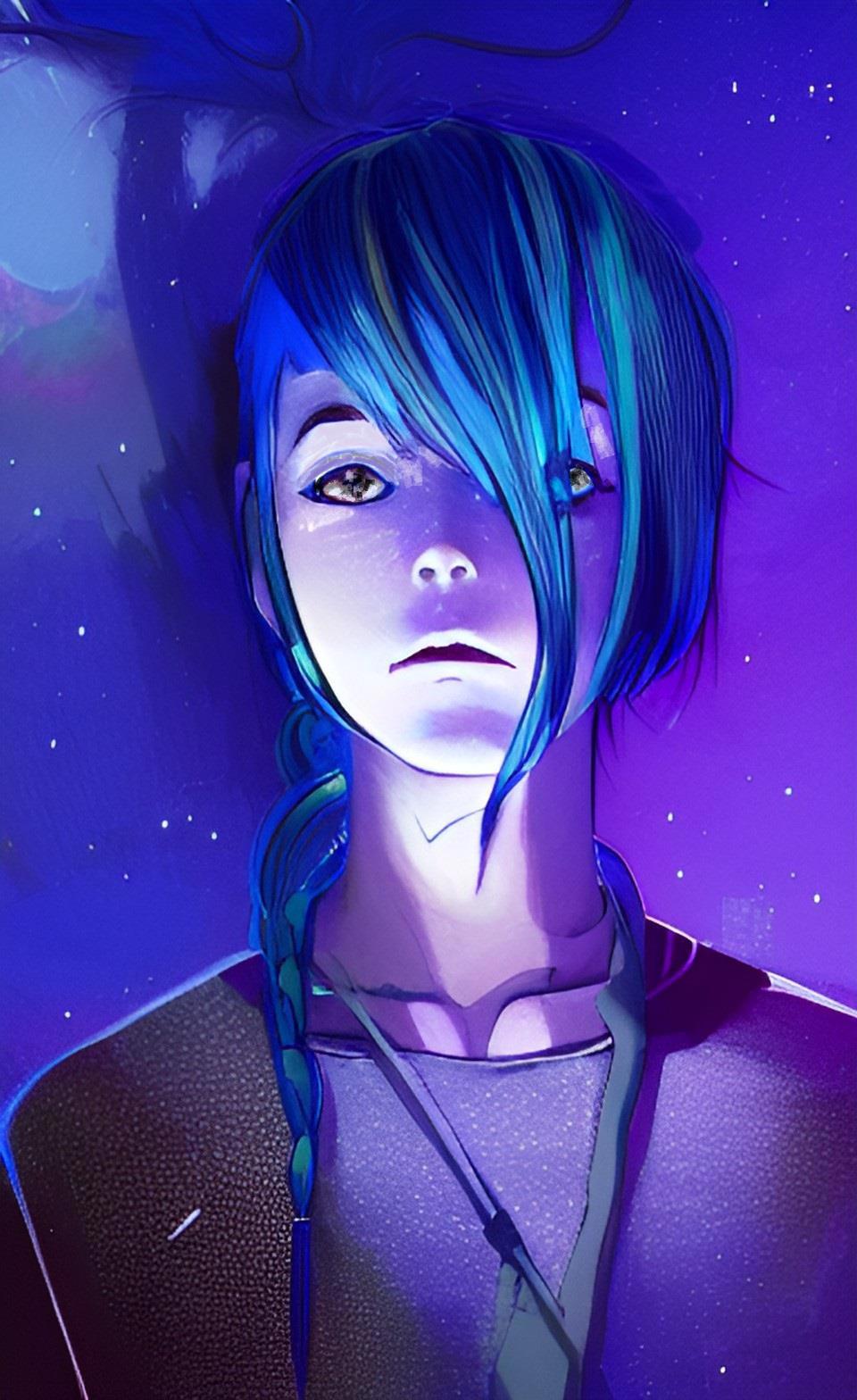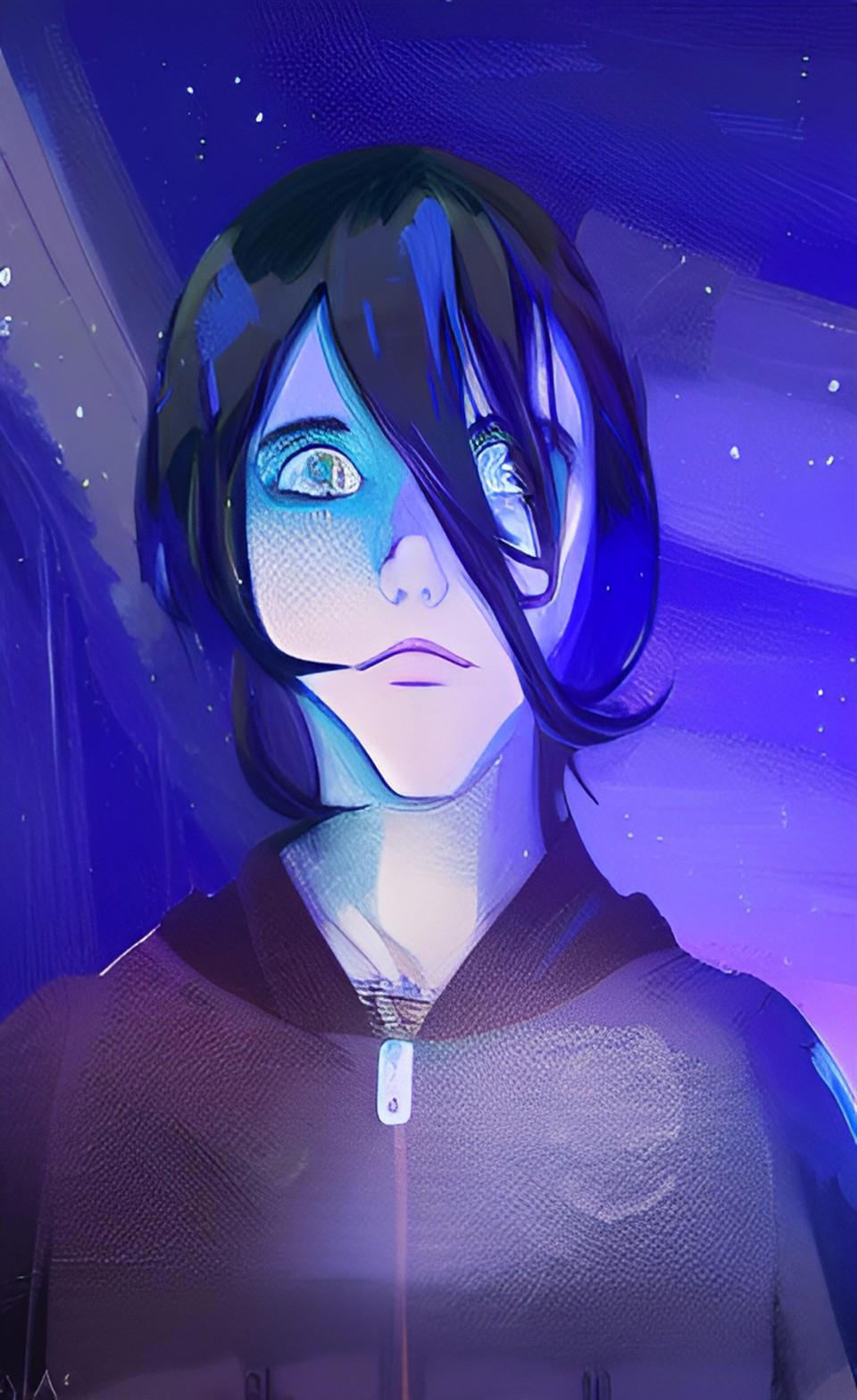 Пишу описание - потому что, нарисовав портрет, я сунула его в Дрим Вомбо, и на его основе сгенерила ещё, было интересно насколько будет отличаться "живая работа" от "нейросеточной".