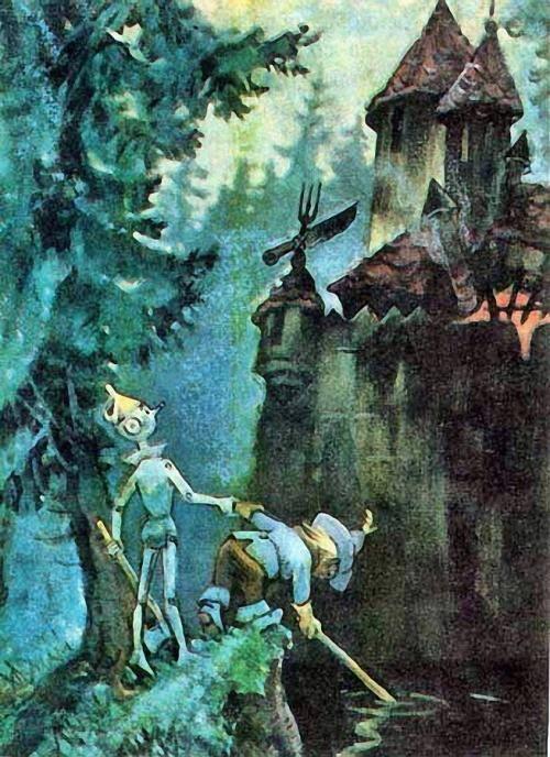 "Финист - ясный сокол", с его превращением в чудовище, с настоящим ситхом Дартом Картаусом. "Аленький цветочек", где каждый иллюстратор, не говоря о мультипликаторах, старались нарисовать зачарованного королевича страшно-ужасным. Кощеи, пафосно-тевтонский Милляра, золото-коварно-улыбчивый Табакова и совершенно инфернальный Филипенко. Сборник "Волшебное кольцо" Андрея Платонова и хтонь, битвы и змеедевы его иллюстраций. "Сказка странствий" Митты, с грустно-осенними глазами позднего Миронова и колдовской музыкой Шнитке. Подземные рудокопы, до поры до времени бывшие загадочными и непонятными и... И много всего прочего, включая малыша Карбараса, синелуч, короля Жан-Жана Караченцова и всё такое. Но...