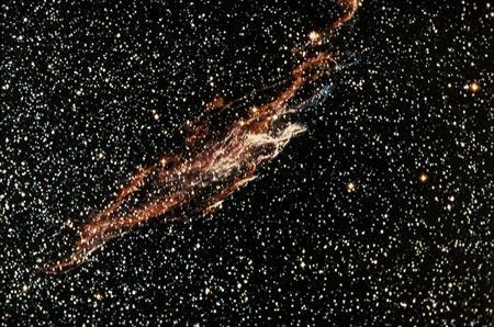 Она также называется Вуалью, но я предпочитаю название Рыбачья Сеть, поскольку вуалеподобных туманностей на небе много, а Рыбачья Сеть одна. Эти три туманности я наблюдал как раз в бинокль (правда, не театральный) -- разумеется, после адаптации зрения и при хорошем безлунном небе.