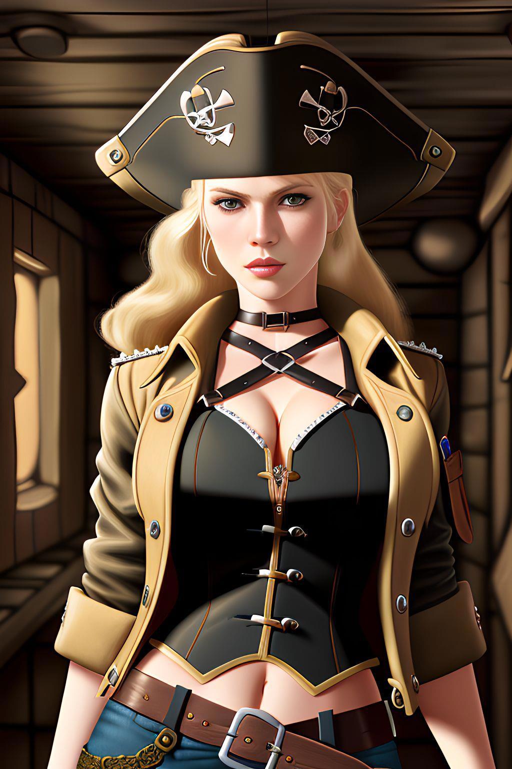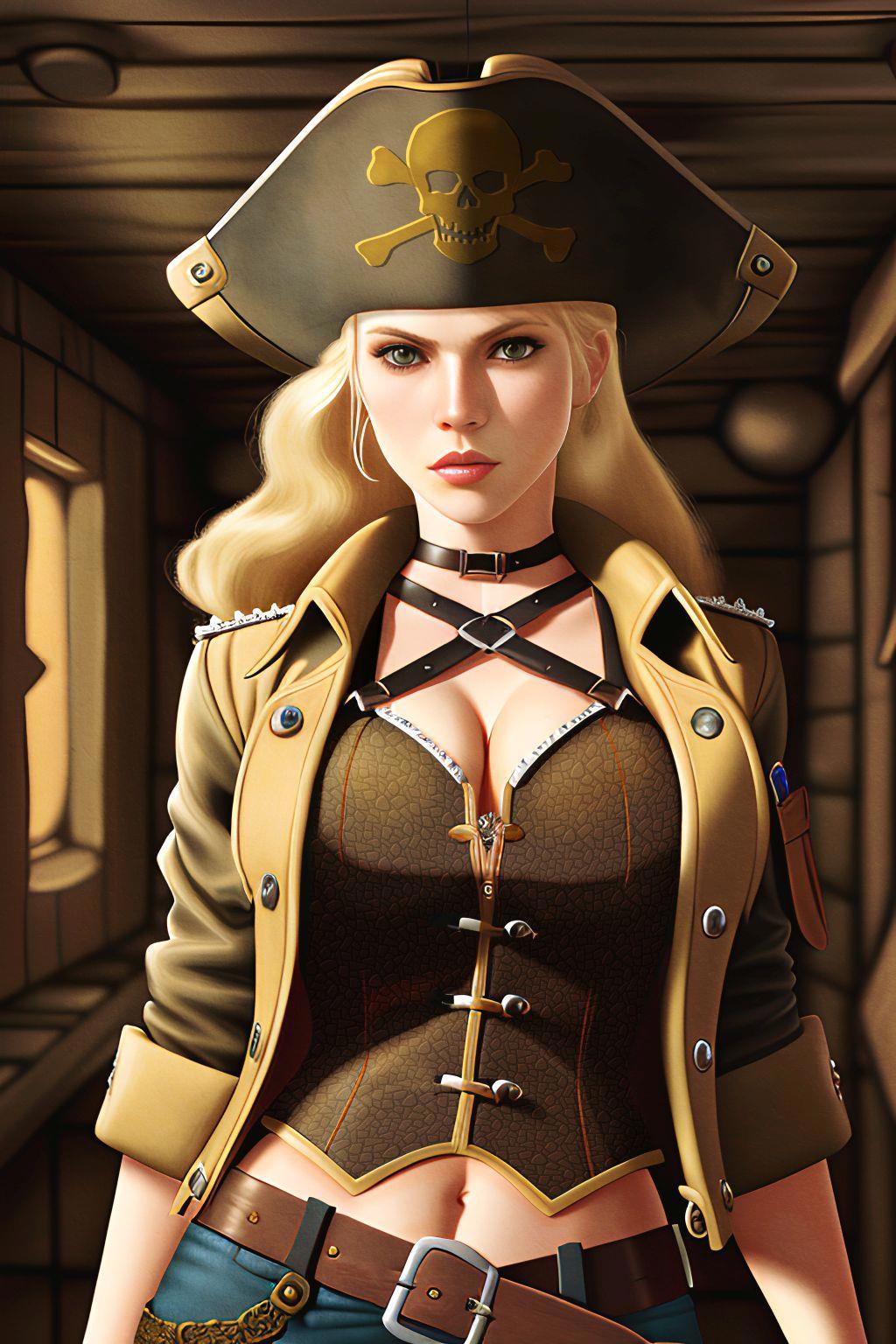 В этот раз мы сделали парочку пиратов. Парня и девушку. Также, с глубокой обработкой. И тоже прикладываем сгенерированный нейросетью исходник, а рядом то, что получилось. Как можно увидеть, нейросеть пока вообще не может в символы и мелкие детали. Хотя, учитывая, что оно развивается семимильными шагами, неизвестно, что будет через полгодика-год. Картинки кликабельны.